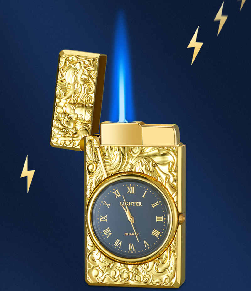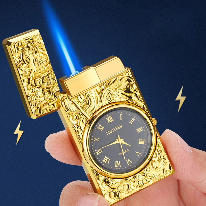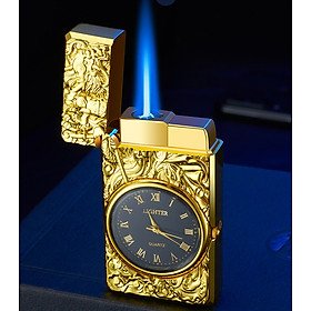 Bật Lửa Hộp Quẹt Khò Gas Kiêm Đồng Hồ Cầm Tay Phát Đèn Led In Nổi Hình rồng