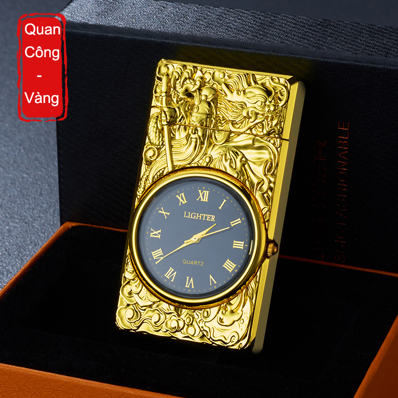 ✨Vỏ Hột Quẹt Bật Lửa Gas HF602 Hình Quan Công Kiêm Đồng Hồ La Mã Cực Đẹp - Nhiều Màu