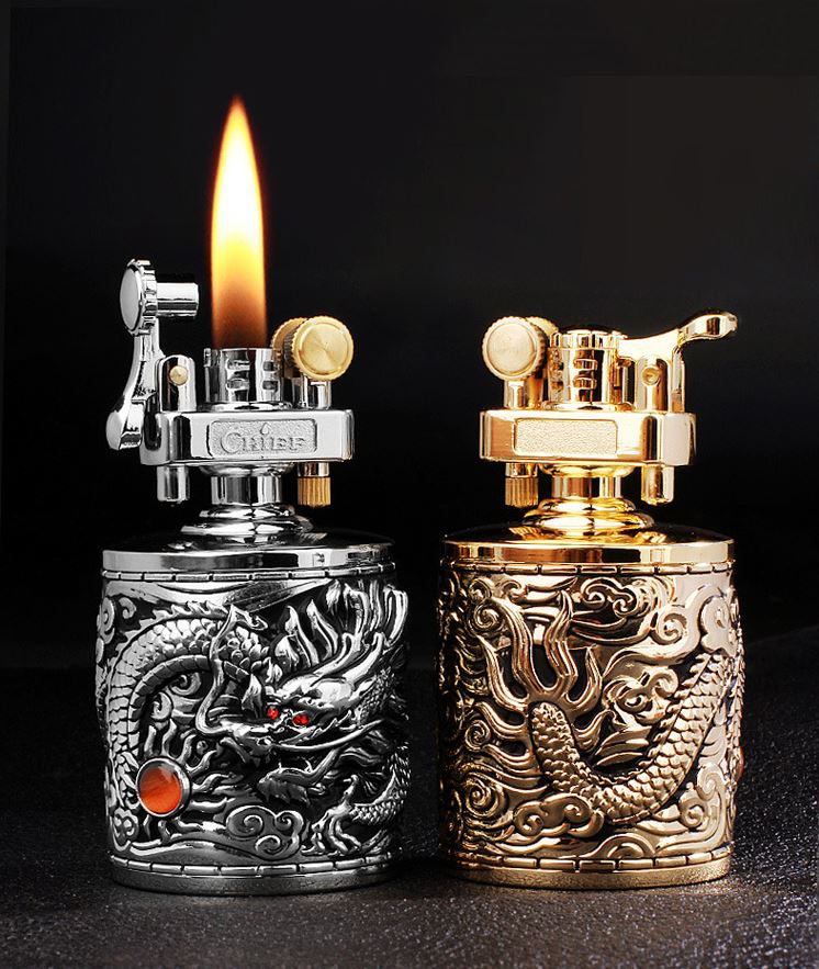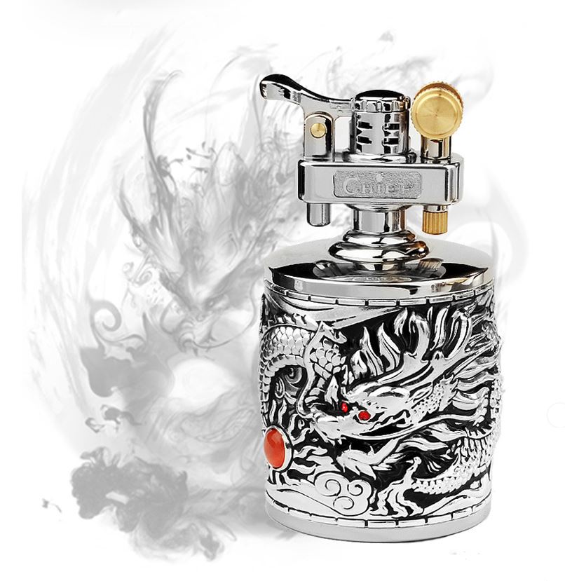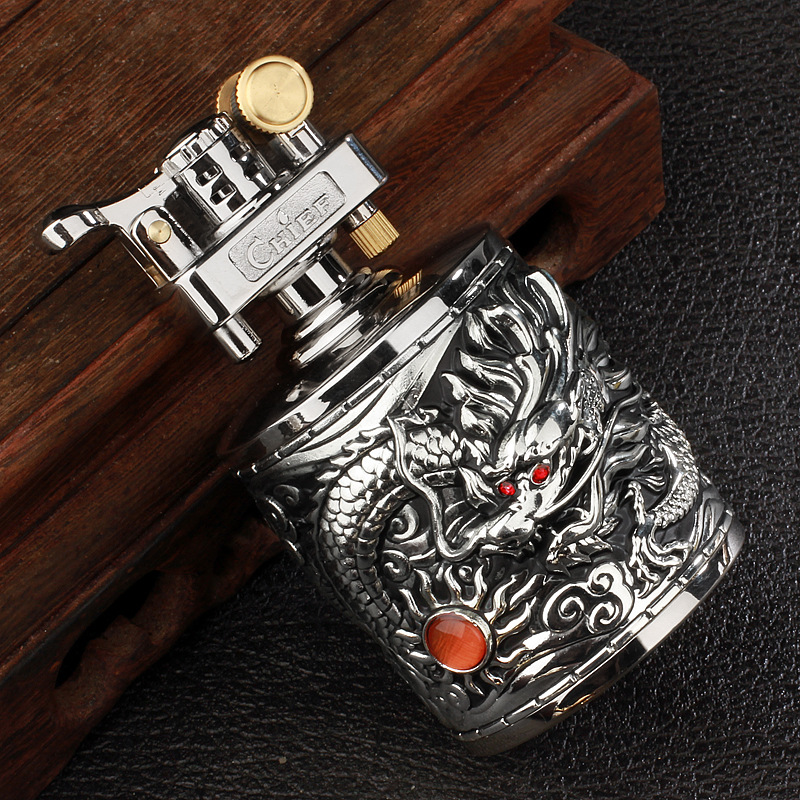 Hộp quẹt bật lửa cối xăng đá đá để bàn Chief CF206 rồng cuộn ôm ngọc #batluadep #batluaxang #batlua