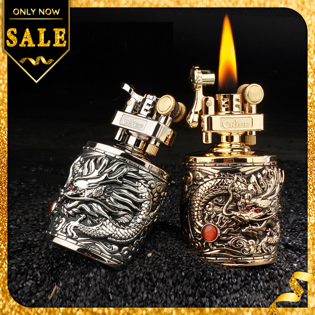 ✨Vỏ Hột Quẹt Bật Lửa Xăng Đá Chief CF-206 Họa Tiết Rồng Cuốn Đẹp Độc Lạ - Dùng Xăng Bấc Đá Cao Cấp