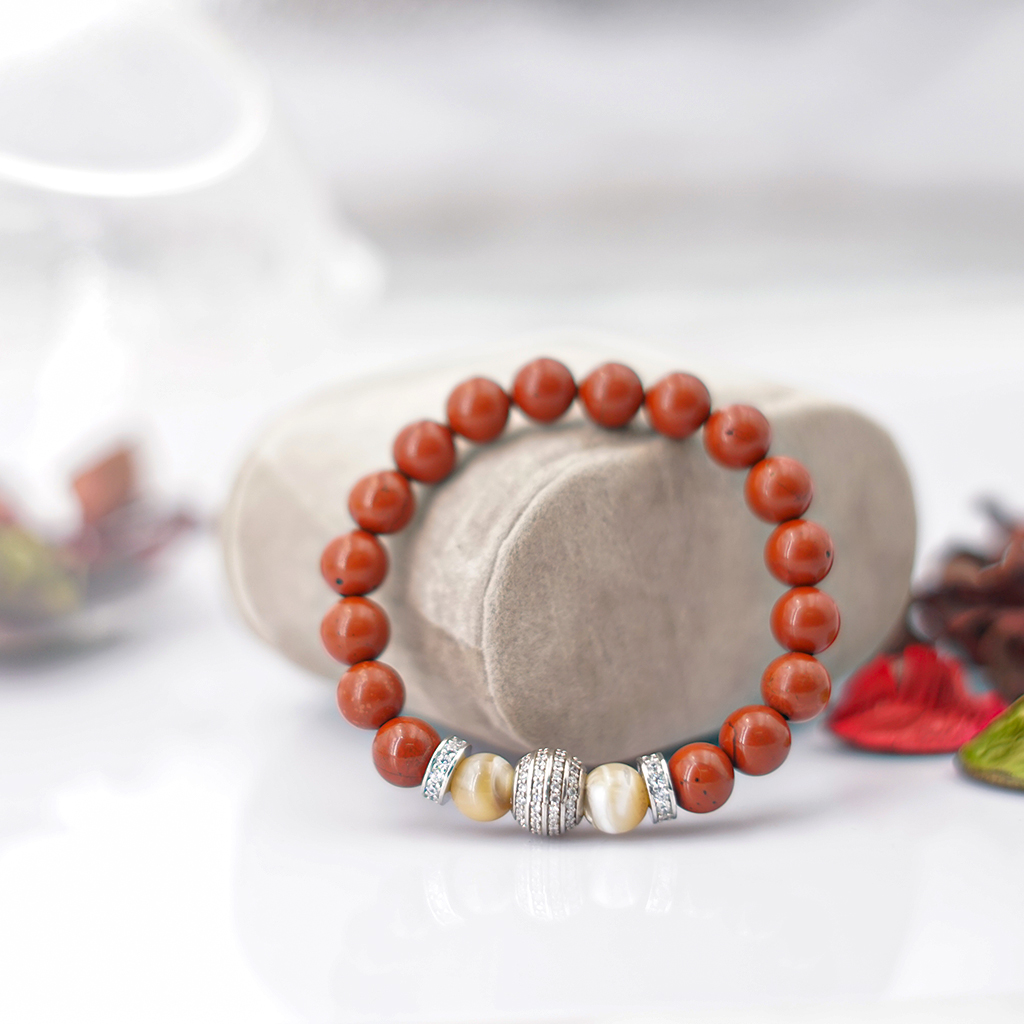 Loại tinh thể: Jasper đỏ Kích cỡ: 8mm Lu thống Bạc đính ngọc Đỏ.