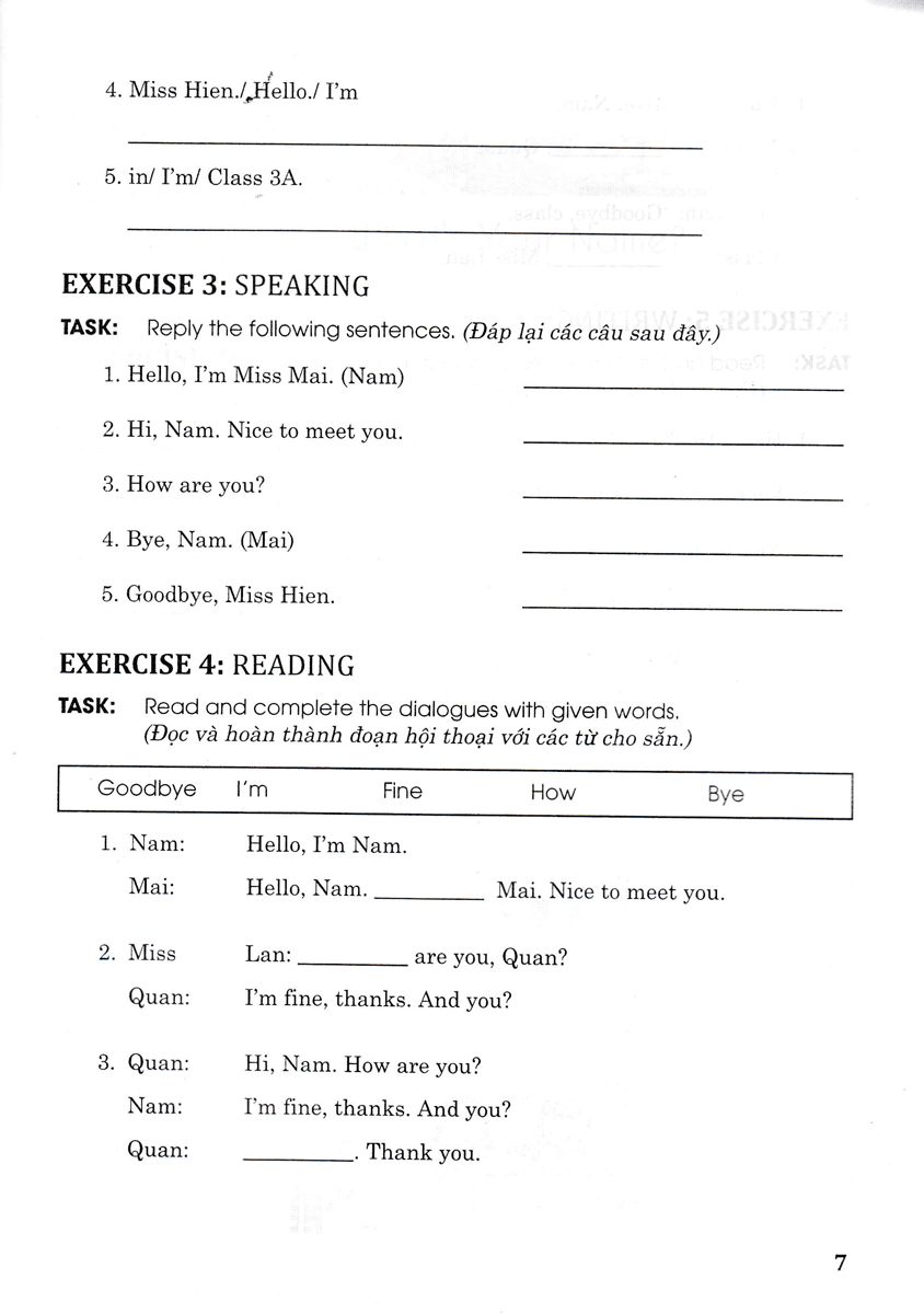 Mỗi Exercise được phân chia thành nhiều bài tập nhỏ sẽ giúp các em dễ dàng ôn tập và thực hành các từ vựng, mẫu câu, cũng như ôn luyện đầy đủ 4 kĩ năng nghe, nói, đọc và viết tiếng Anh.