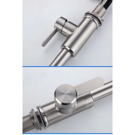 Vòi rửa bát nóng lạnh đầu dây rút, gồm có 2 lựa chọn như sau: Mẫu 1. Mã vòi dây rút R02H, chất liệu inox mờ bền bỉ (màu inox) Mẫu 2. Mã vòi dây