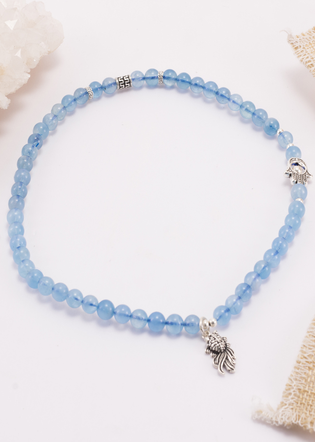 VÒNG TAY ĐÁ CHALCEDONY : Chalcedony sở hữu hoa văn và màu sắc đặc biệt cùng hiện tượng tán sắc vô cùng thú vị, rất ít xuất hiện ở những loại đá khác. Vòng tay Đá Chalcedony charm cây bạc mang đến điềm lành, giúp nuôi dưỡng và ổn định tinh thần lẫn tình cảm ở chủ nhân, là món quà mà bất kì ai cũng mong muốn sở hữu. CÔNG DỤNG VÀ Ý NGHĨA CỦA ĐÁ CHALCEDONY: - Về mặt phong thủy - Chalcedony là viên đá của niềm vui, sự hân hoan và đức tính trung thực ở con người. - Kích thích sự hưng phấn, cảm giác lạc quan, yêu đời ở người đeo, dẫn lối cho họ đến thành công. - Lan tỏa nguồn năng lượng tích cực, giúp chủ nhân thu hút nhiều may mắn và tiền bạc trong cuộc sống. - Về mặt sức khỏe - Chalcedony giúp cân bằng và ổn định cảm xúc, được ứng dụng để phòng chứng trầm cảm, rối loạn tiến đình và một số vấn đề liên quan đến thần kinh khác. - Đeo đá thường xuyên sẽ giúp bạn có giấc ngủ ngon và tràn đầy năng lượng cho một ngày mới. - Hợp mệnh - Chalcedony Xanh phù hợp với người mệnh Mộc (theo tương hợp) và mệnh Hỏa (theo tương sinh). CÁCH BẢO QUẢN SẢN PHẨM: 1. Tránh để vòng tiếp xúc với các hóa chất. Khi mang nên tránh để vòng tay tiếp xúc với hóa chất tẩy rửa mạnh: javen, chất tẩy trắng, axit 2. Tránh va đập mạnh. Là sản phẩm được làm từ đá tự nhiên có độ cứng định, nhưng cũng sẽ vỡ, trầy xước khi va đập mạnh, nên tránh các trường hợp sau: - Không mang vòng khi chơi thể thao và các hoạt động mạnh khác. - Tránh va đập vòng, làm rớt vòng. - Tránh ma sát vòng với các bề mặt sắc cạnh như dao kéo hoặc bề mặt dễ gây trầy xước như xi măng, nền đá nhám, đá sỏi 3. Sử dụng và cất giữ vòng đúng cách. - Có thể tháo vòng khi đi tắm và khi đi ngủ.