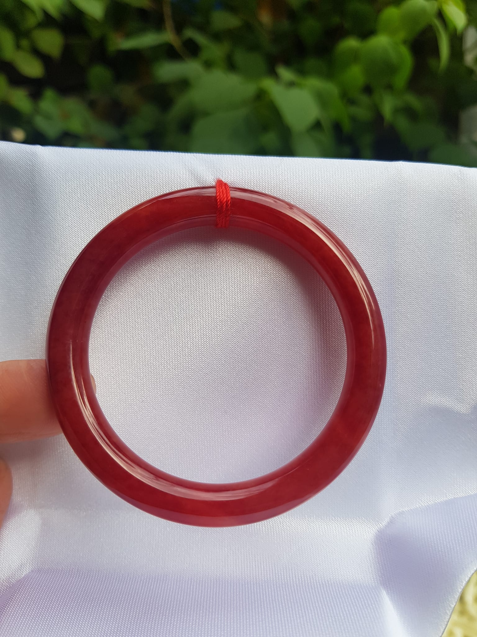 Vòng Cẩm Thạch Đỏ đẹp I Size 49mm Vòng tay đỏ đỏ đậm đẹp đeo lên may mắn chuẩn hợp Nữ mệnh Hỏa mệnh Thổ ạ Nữ cân nặng 45kg -> 51kg đeo vừa tay