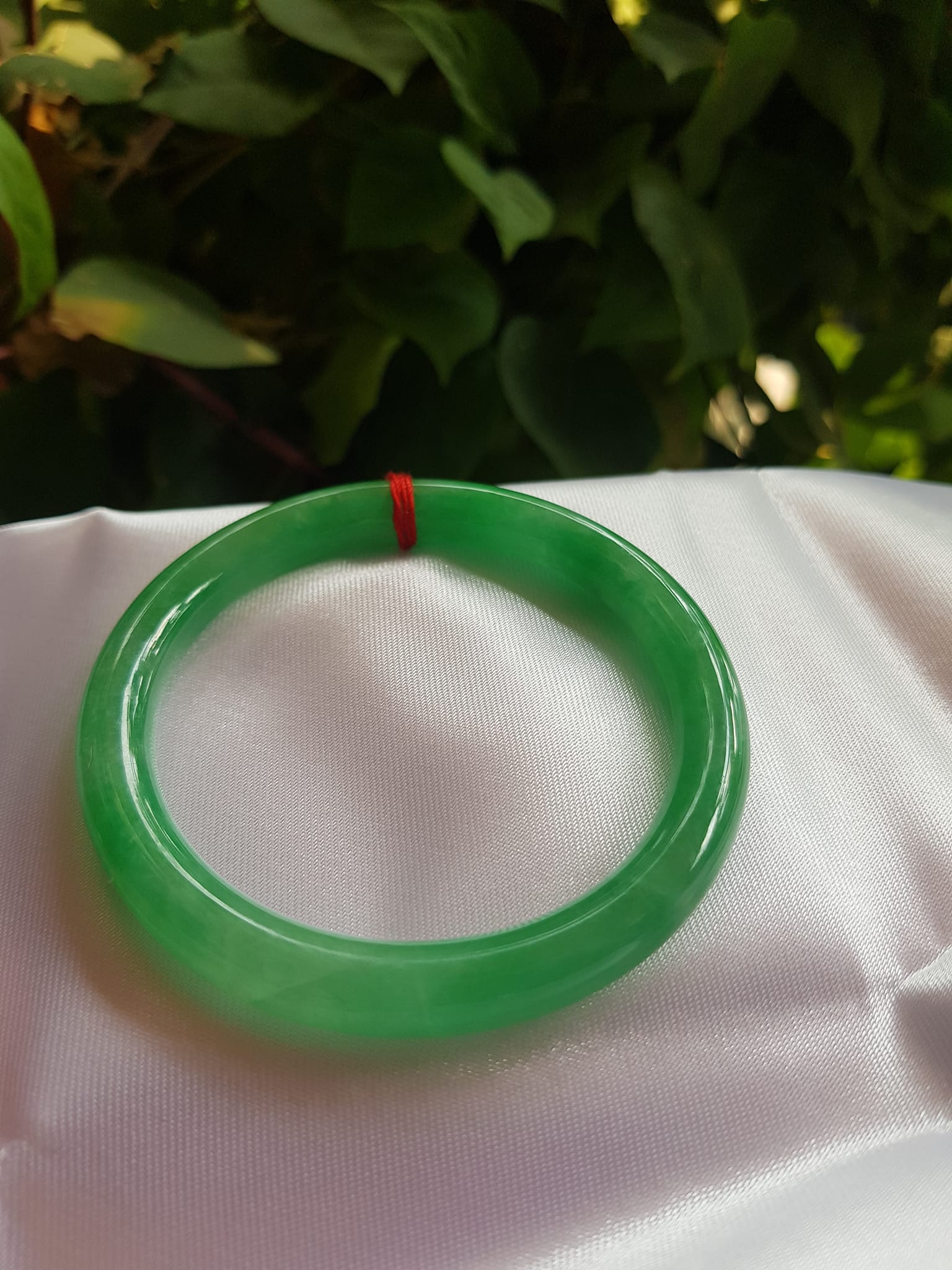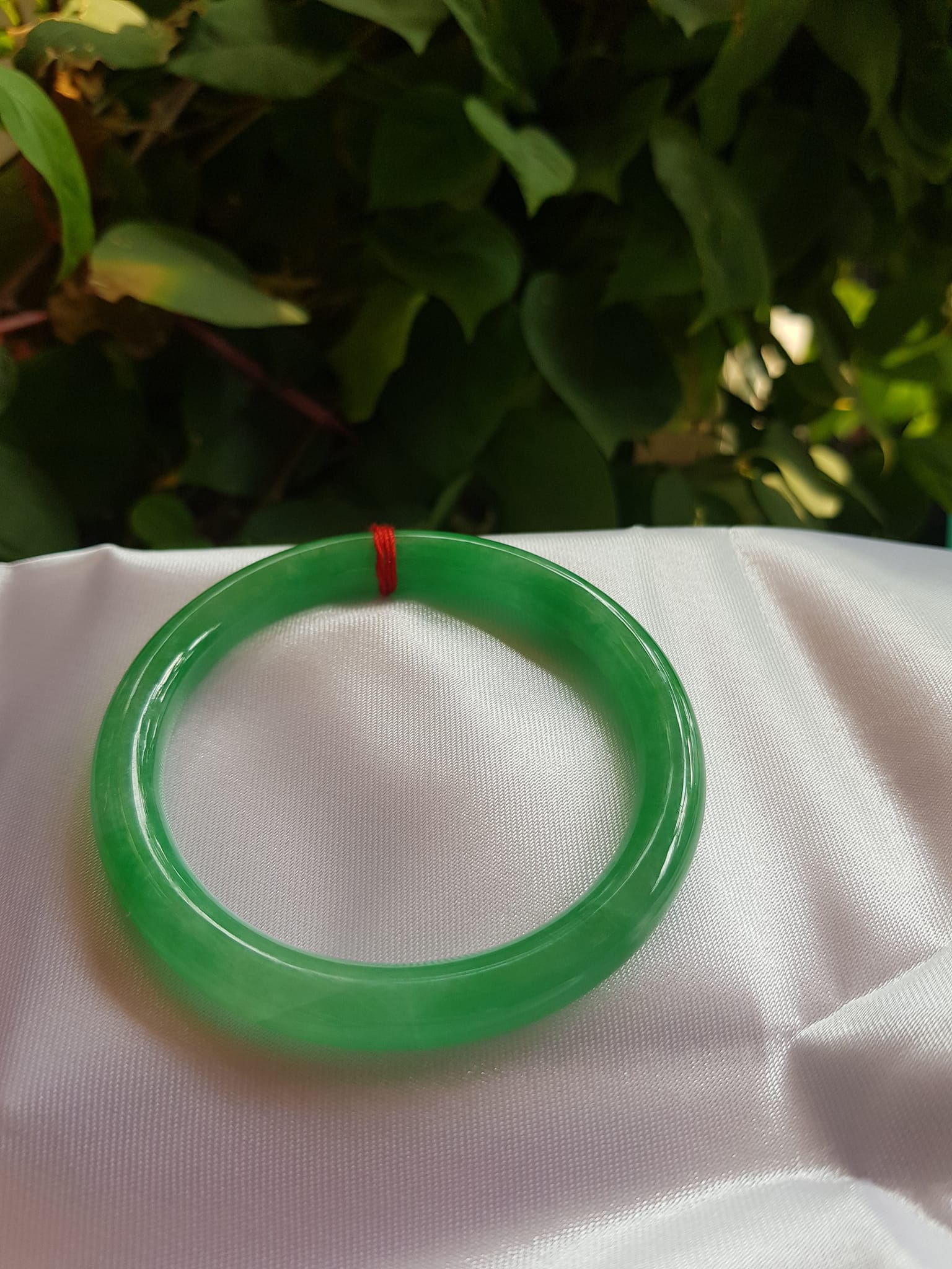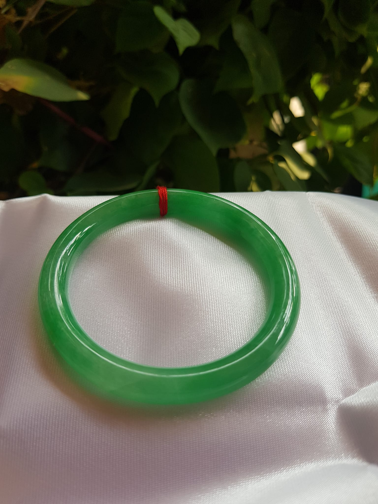 Vòng cẩm thạch Đ Lý 52mm x dầy 7,8mm màu xanh lá tươi hợp Nữ mệnh Mộc mệnh Hỏa 52kg - 56kg đeo ạ