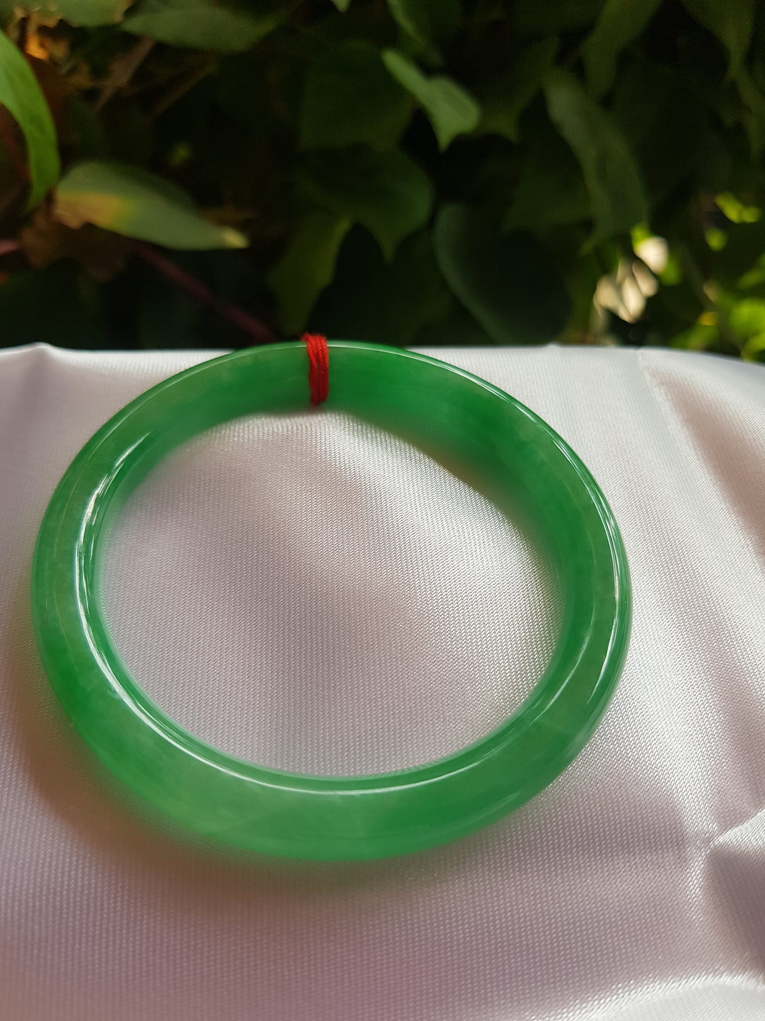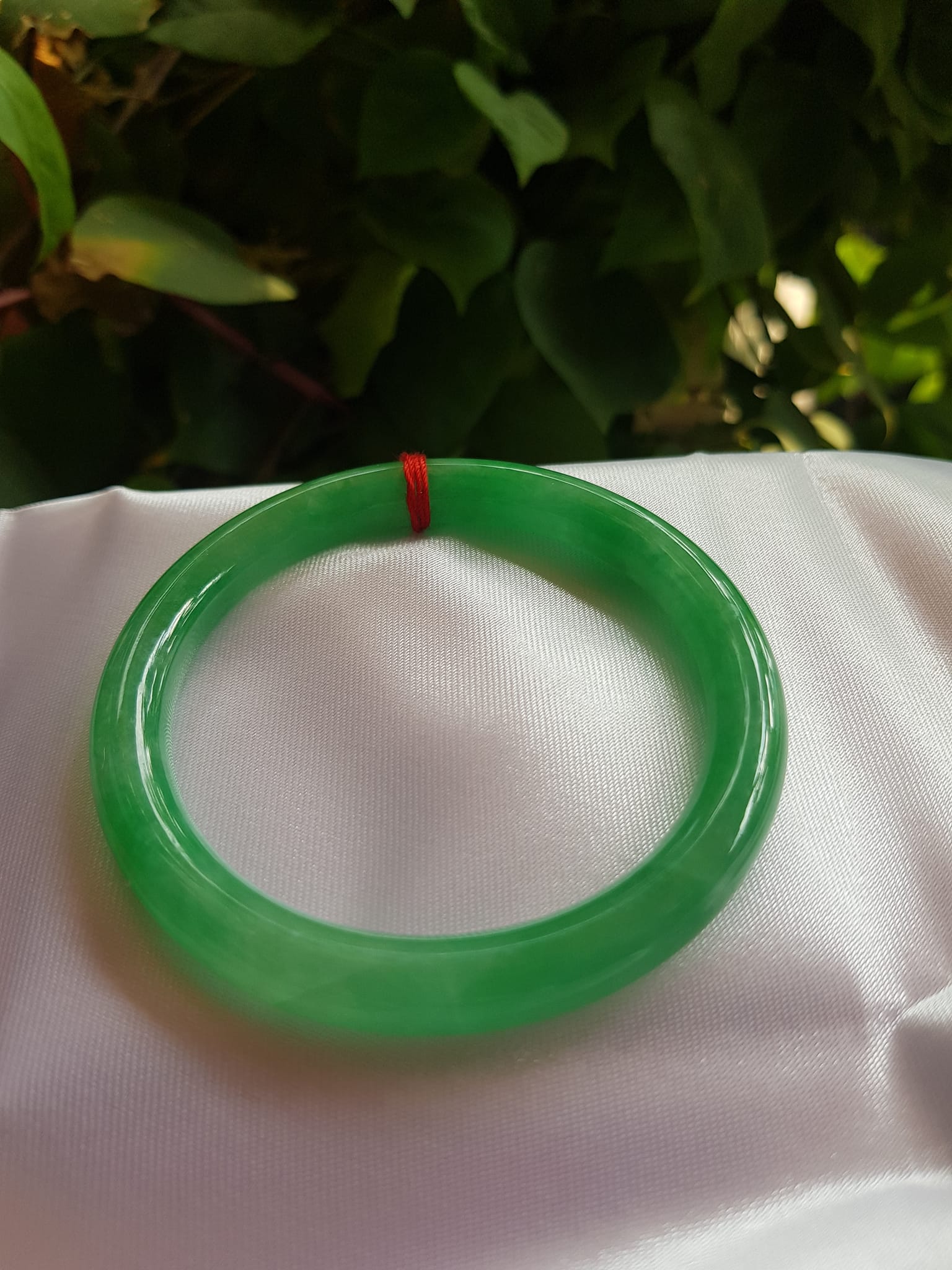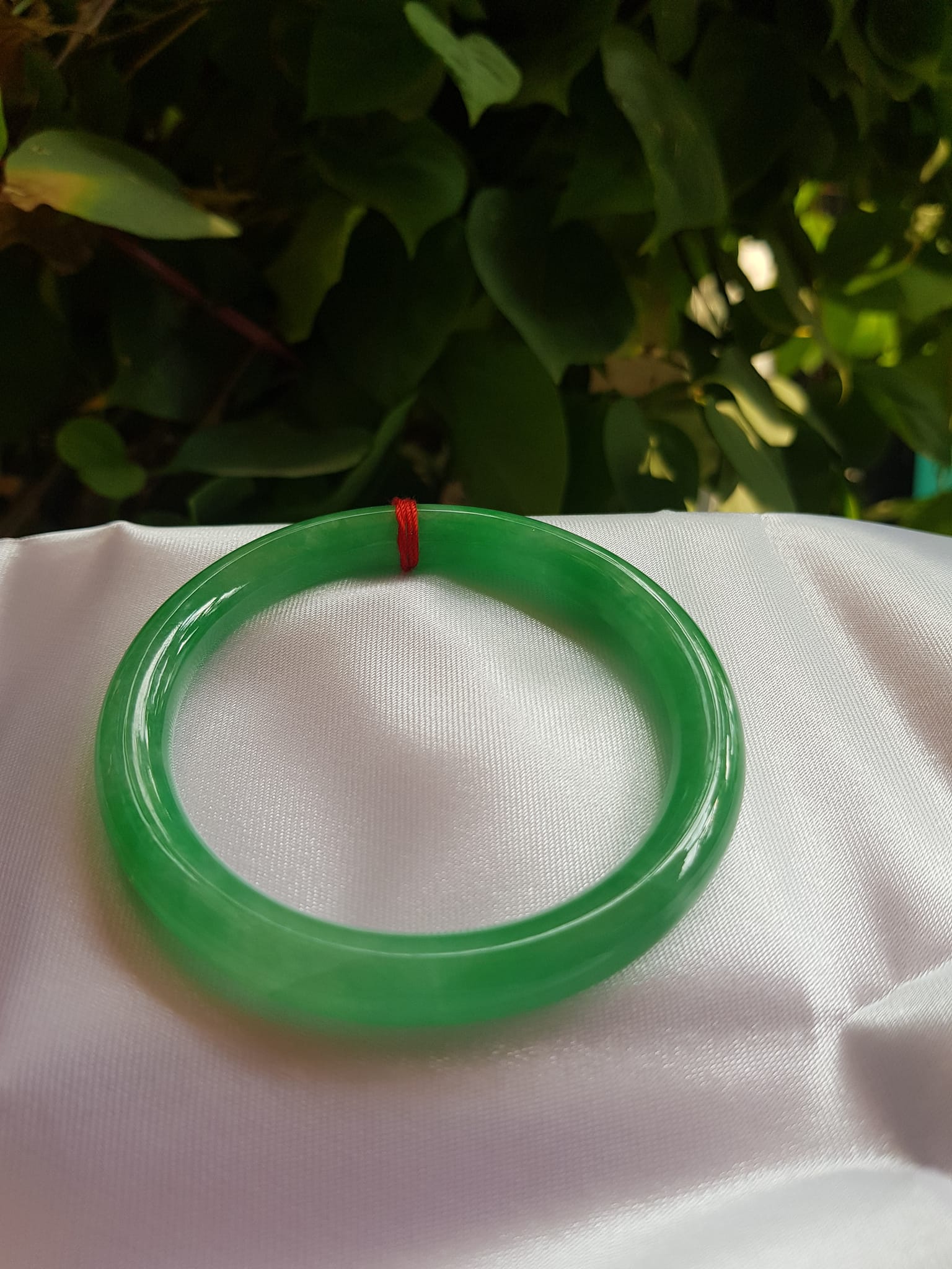 Vòng cẩm thạch Đ Lý 52mm x dầy 7,8mm màu xanh lá tươi hợp Nữ mệnh Mộc mệnh Hỏa 52kg - 56kg đeo ạ