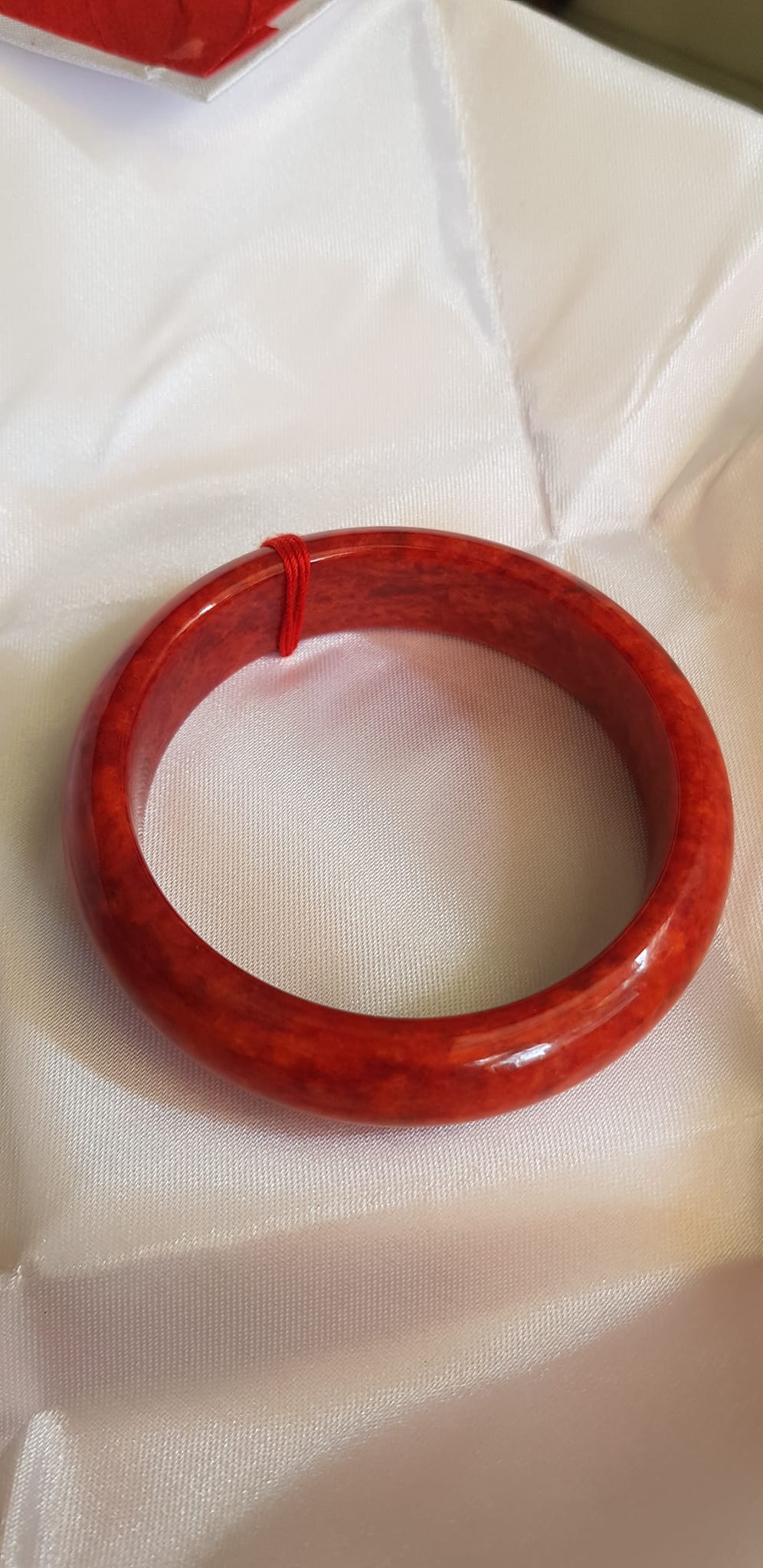 ✨Vòng Cẩm Thạch mới Bản Hẹ Đỏ 56mm x cao 15mm x dầy 7,5mm màu đỏ bông bông đều đậm đẹp nữ mệnh hỏa mệnh thổ 54kg - 65kg đeo hợp ạ
