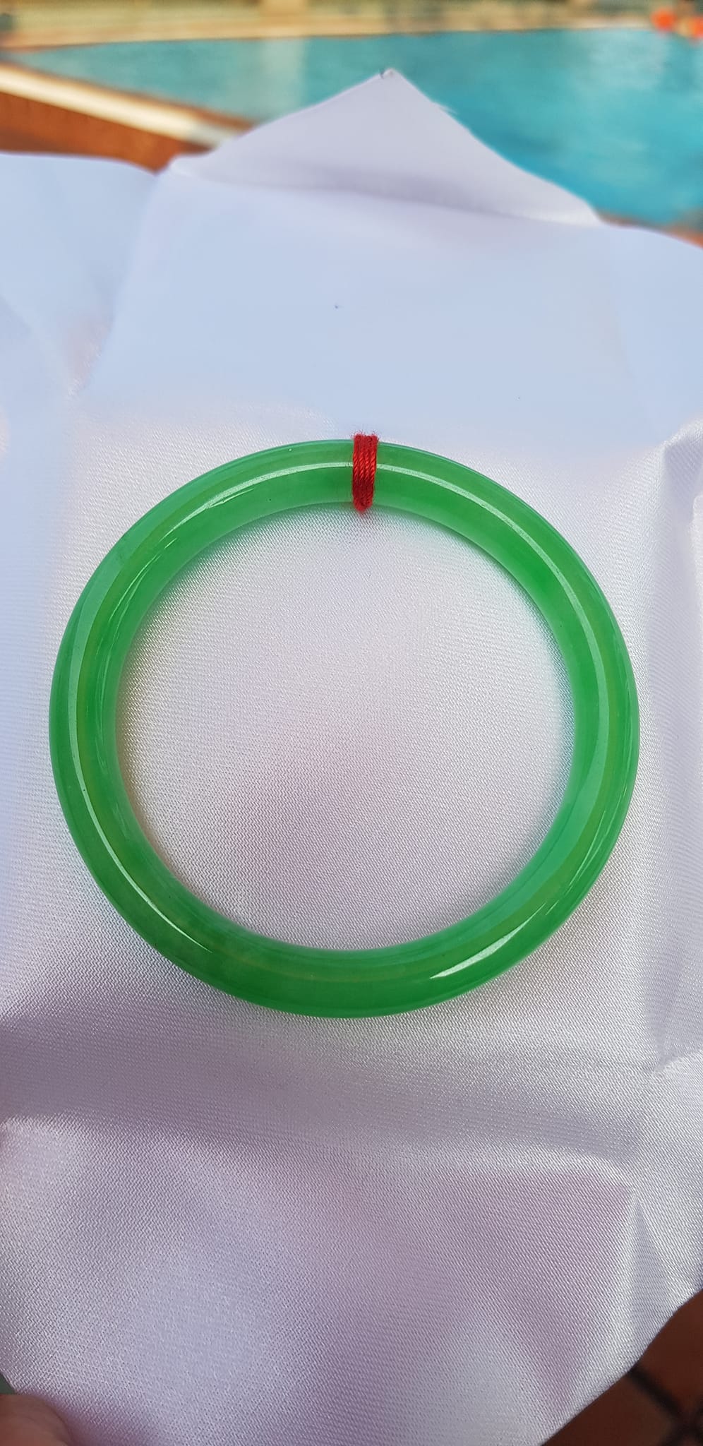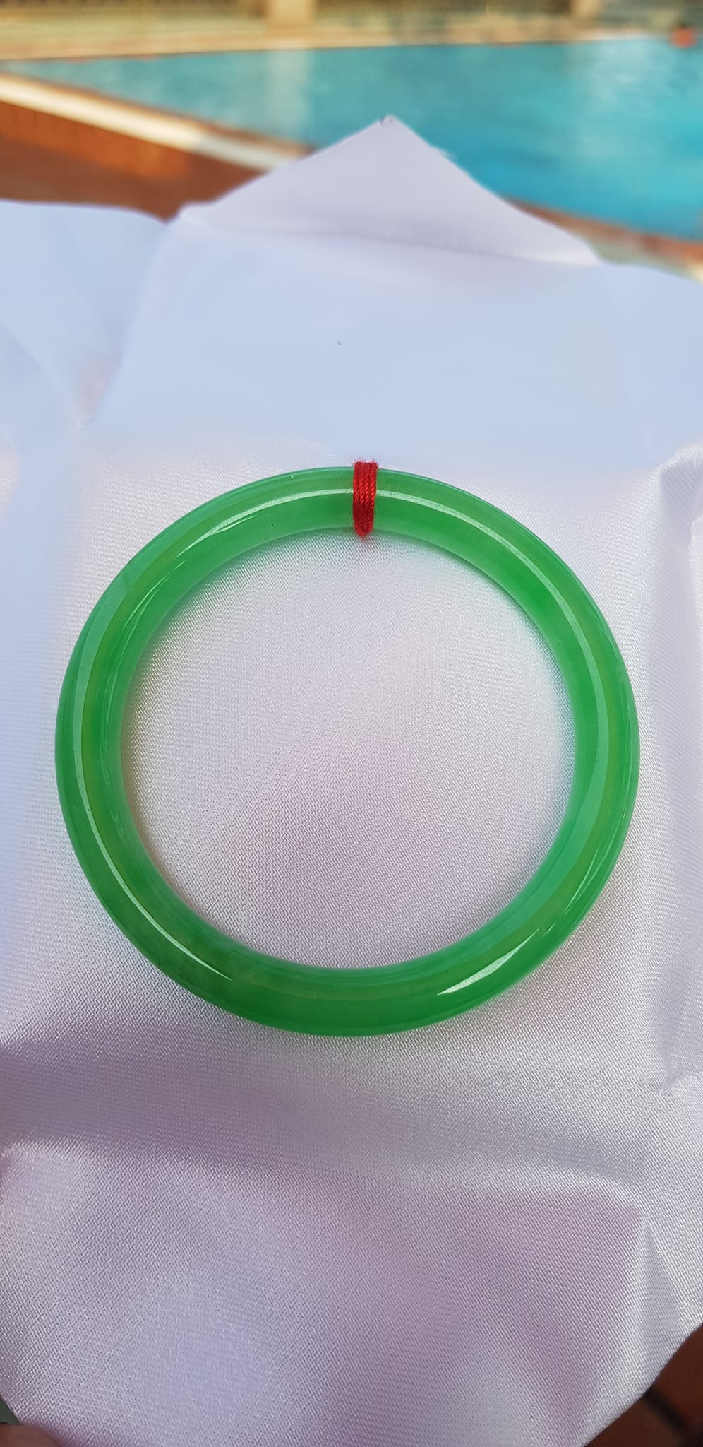 Vòng cẩm thạch Đ Lý 52mm x dầy 7,8mm màu xanh lá tươi hợp Nữ mệnh Mộc mệnh Hỏa 52kg - 56kg đeo ạ
