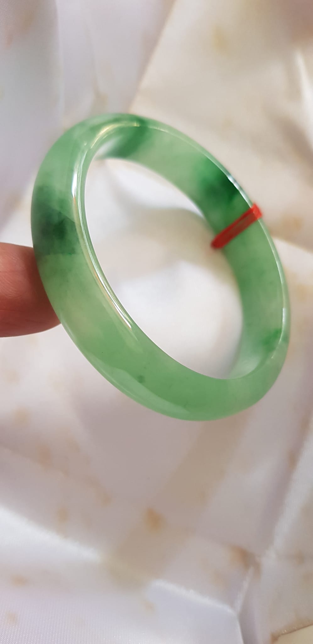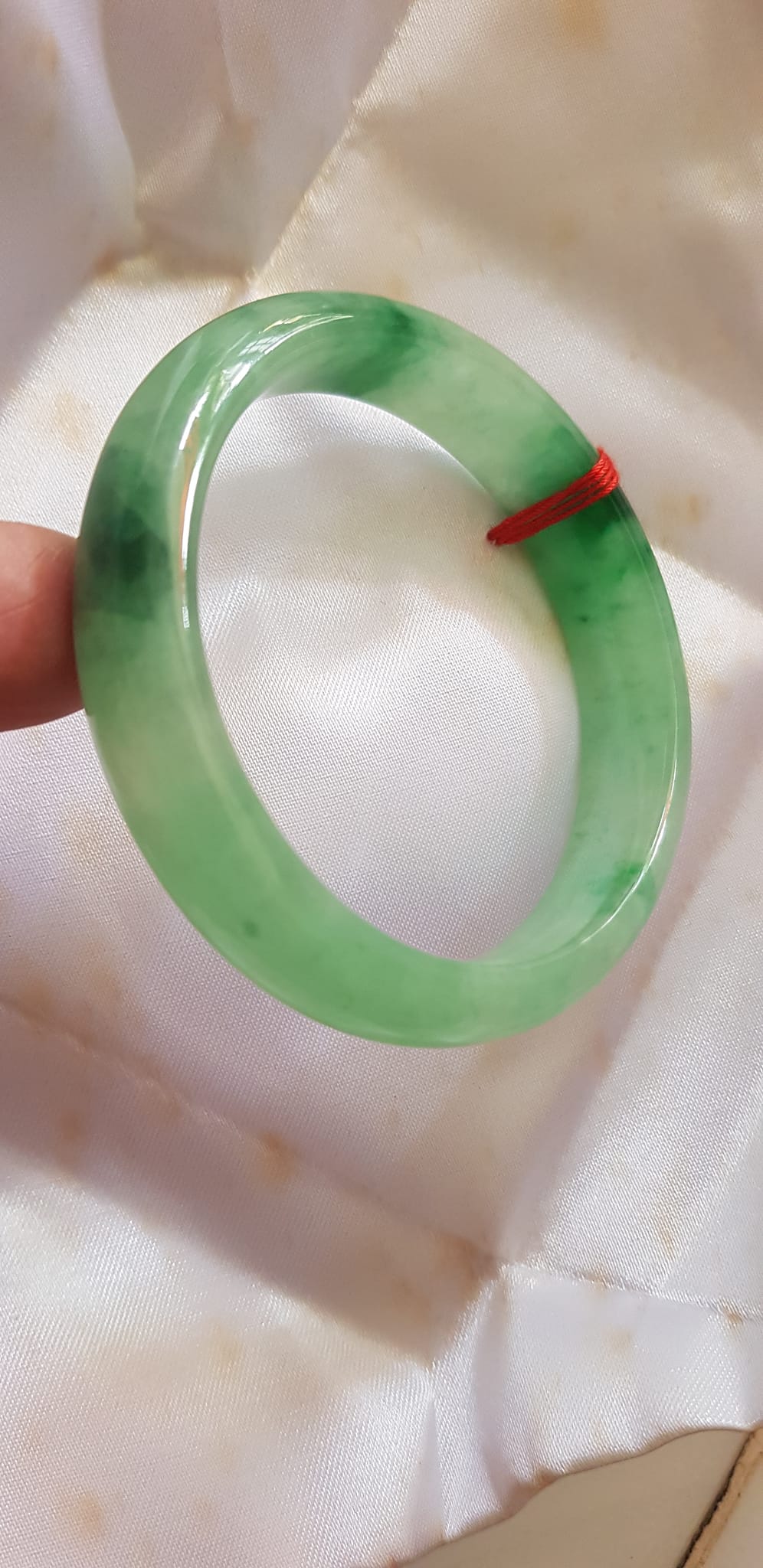 ✨Vòng Cẩm Thạch tự nhiên Bản Hẹ Sịn size 53mm x cao 12mm x dầy 7mm màu xanh lý tươi bóng đẹp nữ 51kg - 56kg đeo ạ