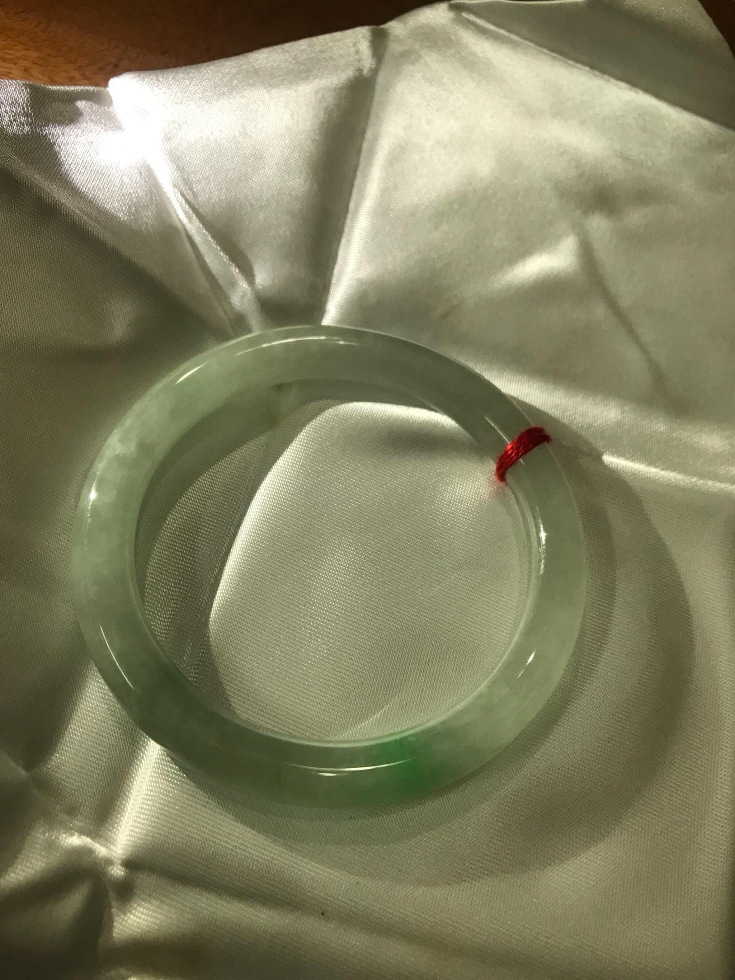 Vòng tay đá Cẩm Thạch mới TR Lý 51mm x cọng 6,2mm Màu Xanh lý 2 bên trắng đều đẹp nữ 50kg - 53kg đeo