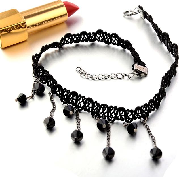 2410 Vòng cổ choker phối ren đính đá sành điệu cho nữ