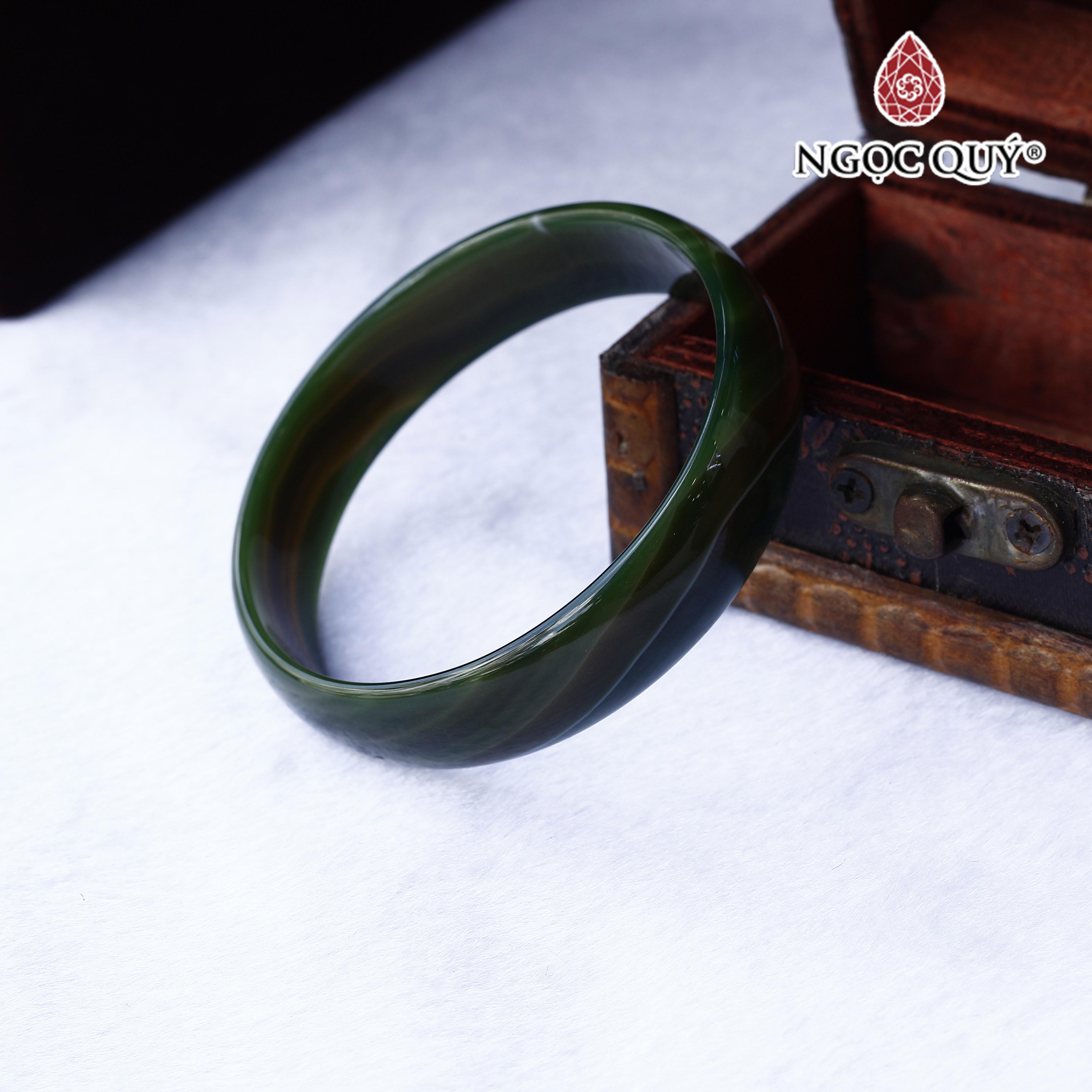 Vòng tay liền khối bản hẹ đá mã não xanh - Hợp Mệnh Mộc & Hỏa [ Ngọc Quý ]