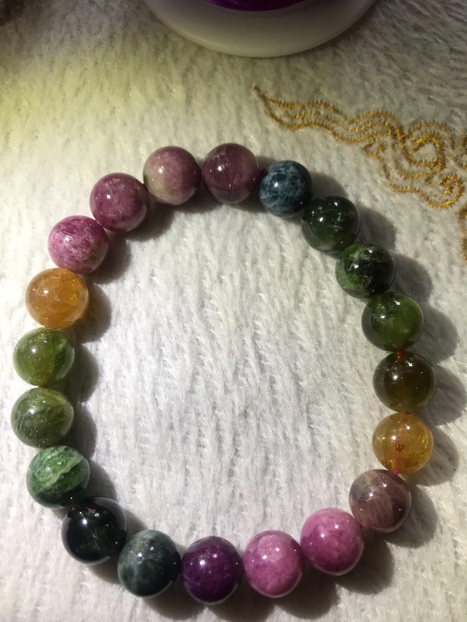 Vòng tay Nữ đá tourmaline dâu tây tự nhiên đa sắc tươi đẹp 9,5mm #godaptsunny #tourmaline #vòng