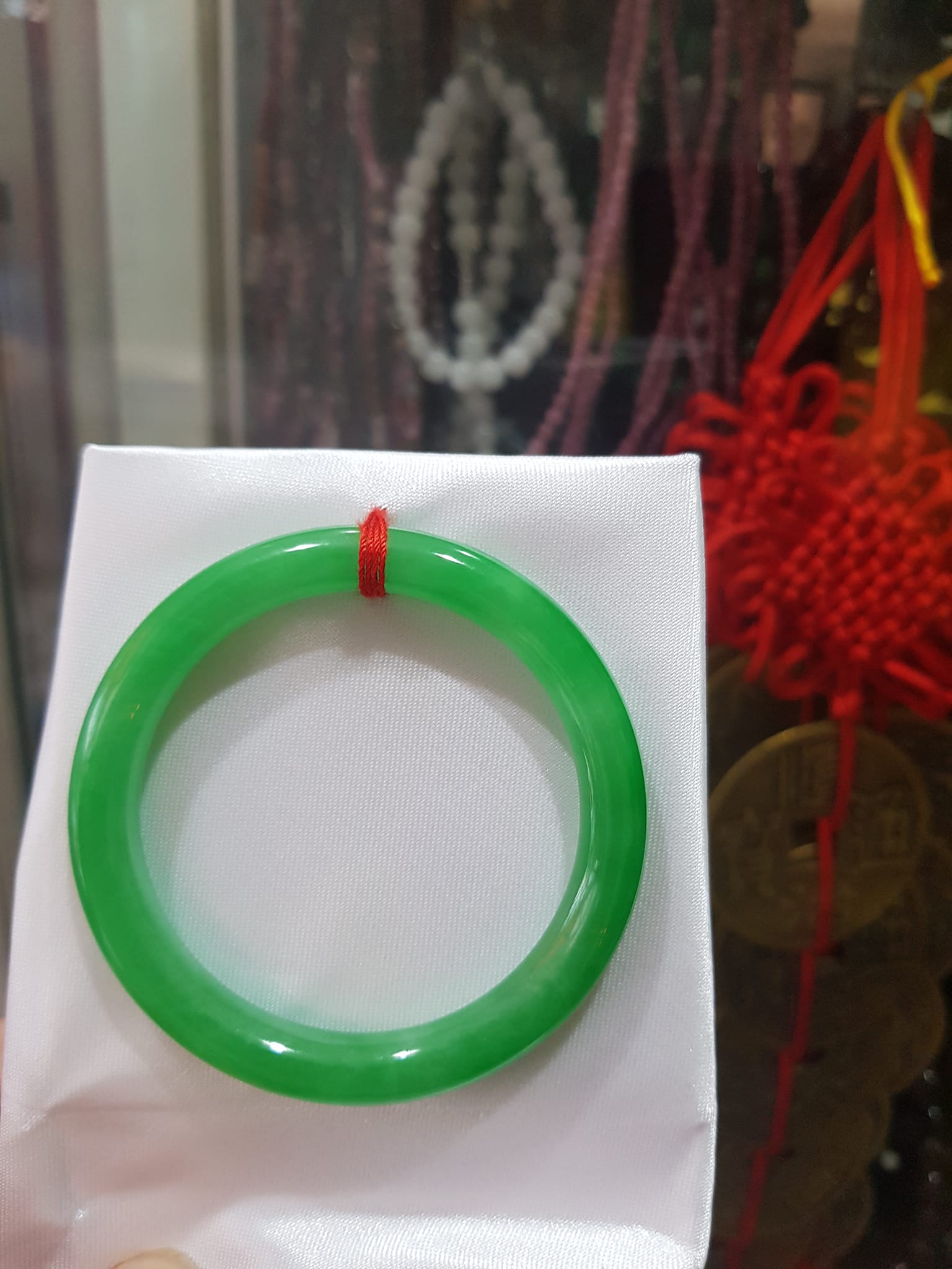 💓Vòng cẩm thạch Lý K 48mm x 7,2mm Xanh lá tươi bóng nữ mệnh Mộc, Hỏa 35kg-48kg 500k ạ SUNNY #qua