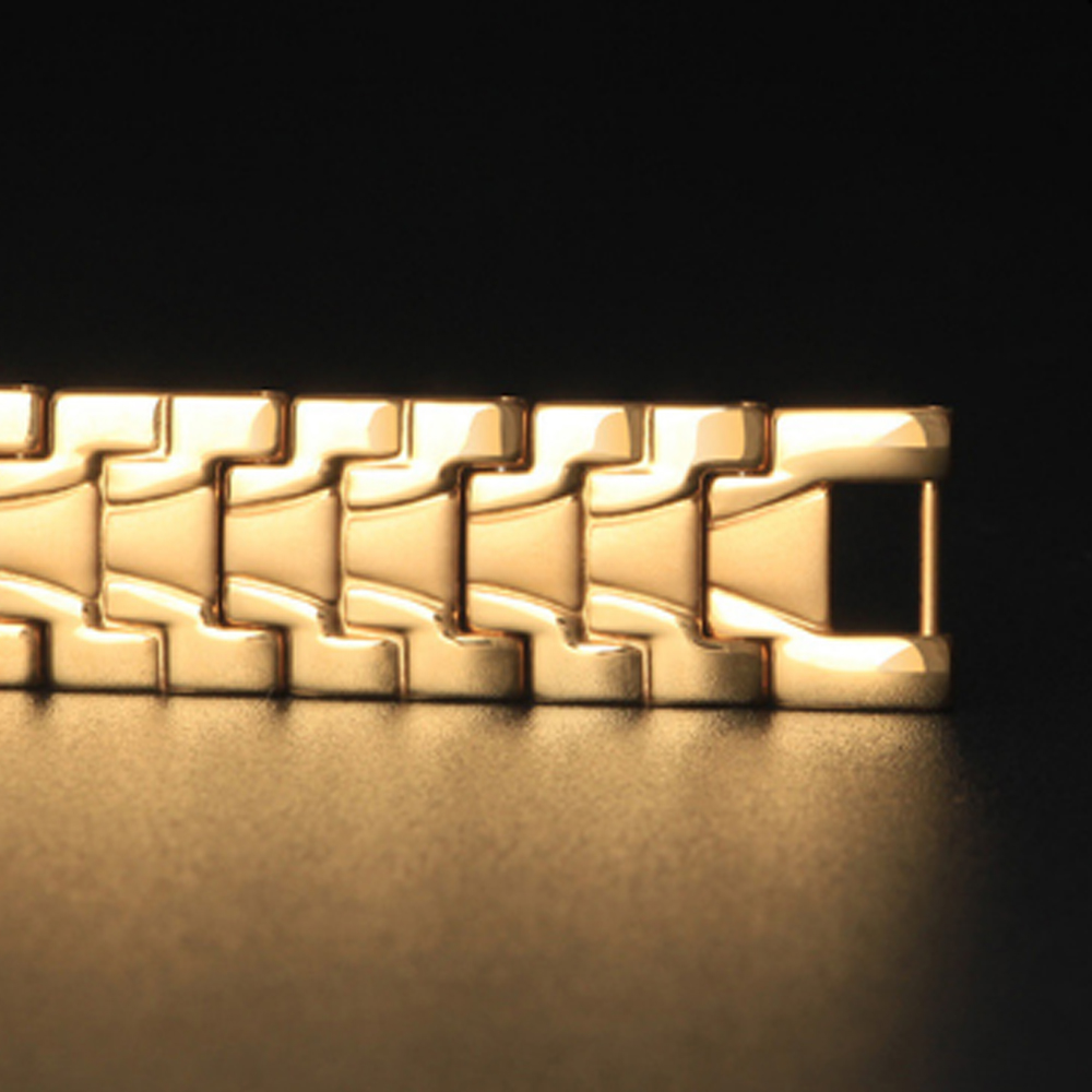 - Vật liệu vỏ / gờ: Sắc vàng kim - Dây đeo bằng da - Mặt kính khoáng - Chống nước - Giờ hiện hành thông thường Đồng hồ kim: 3 kim (giờ, phút, giây)