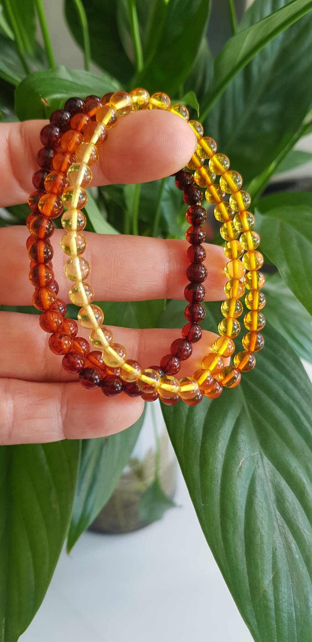 ✨Vòng Hổ Phách tự nhiên đeo quấn tay kiểu 3 vòng Size hạt 5mm 3 màu tam hợp màu vàng anh cam đỏ đậm phối tay các Chị Em Nữ lên tay đeo rất xinh ạ