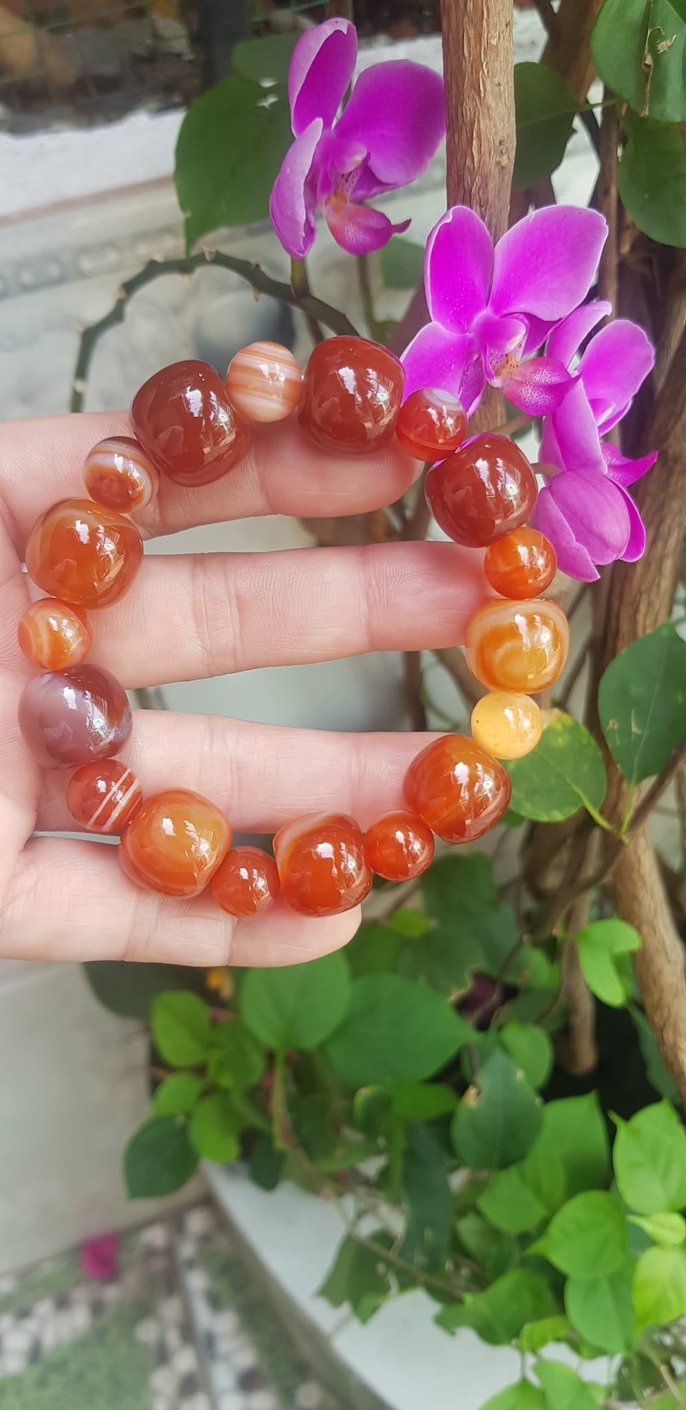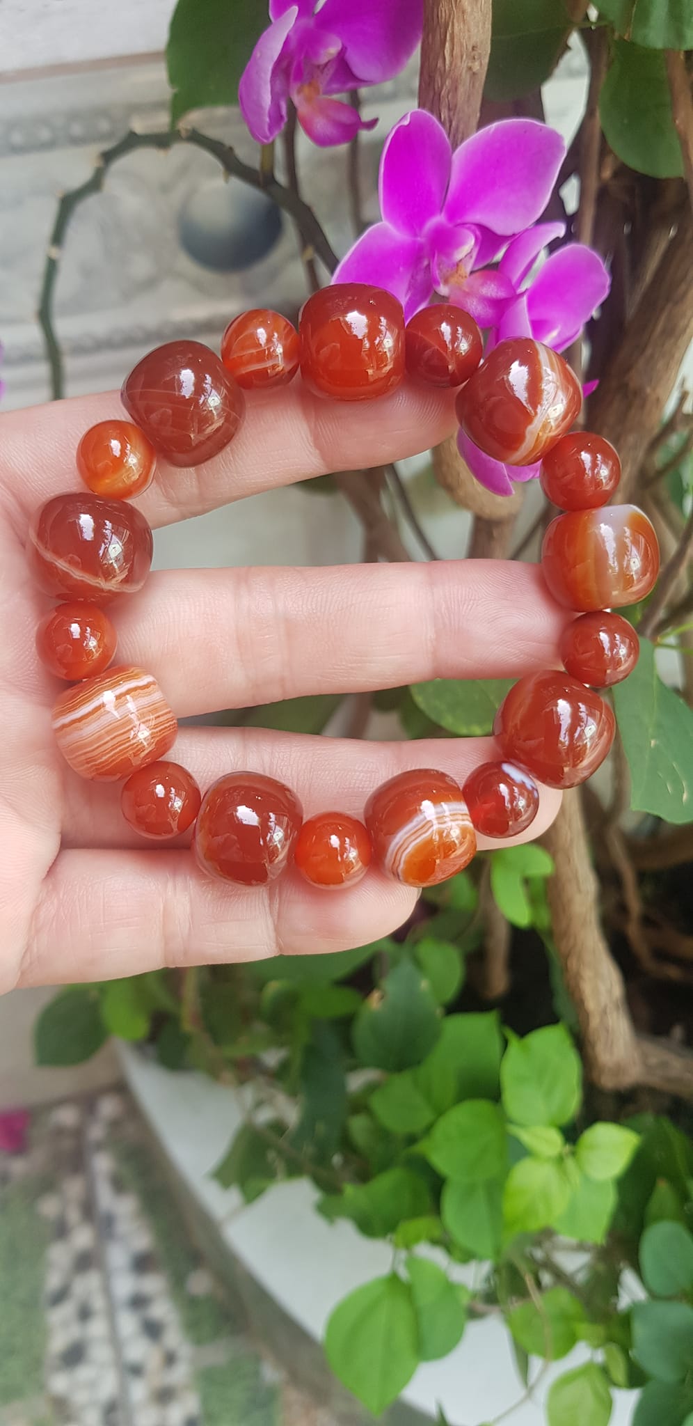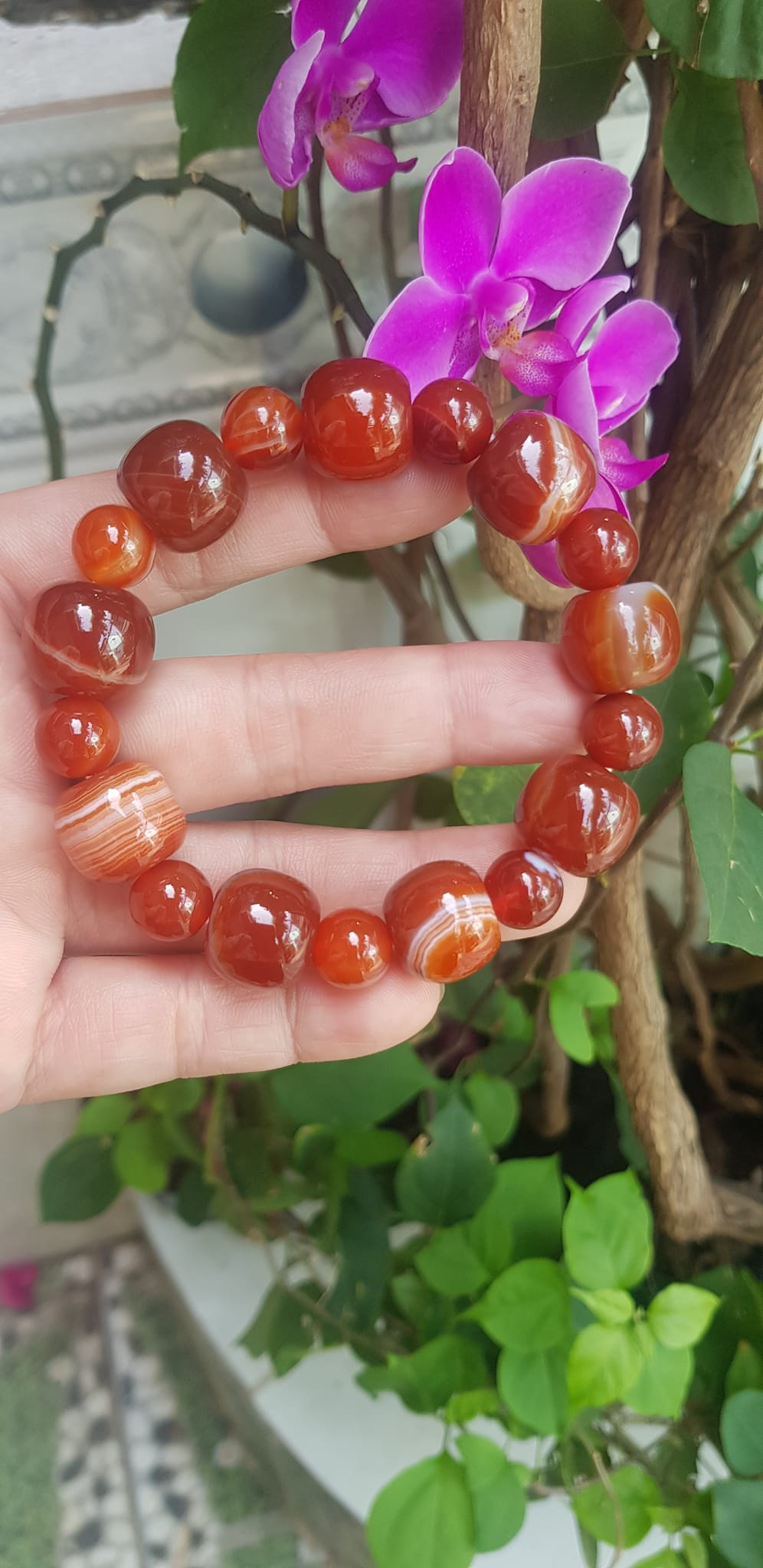 Vòng tay nữ đá mã não đỏ vân đẹp mới Ni 54mm x cọng 8,5mm nữ mệnh hỏa mệnh thổ 52kg - 60kg đeo ạ