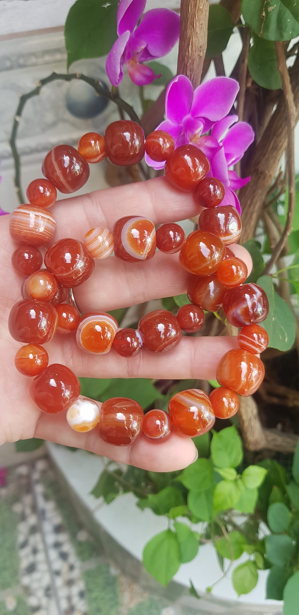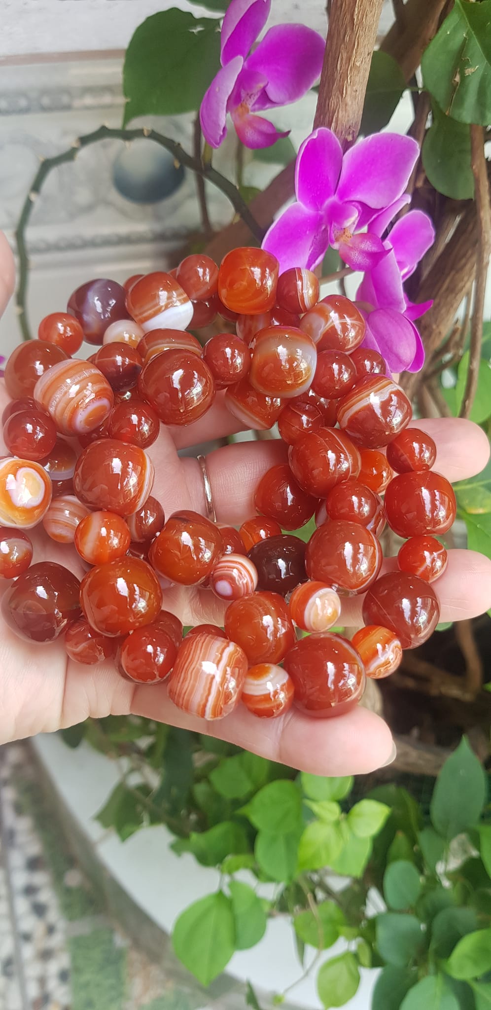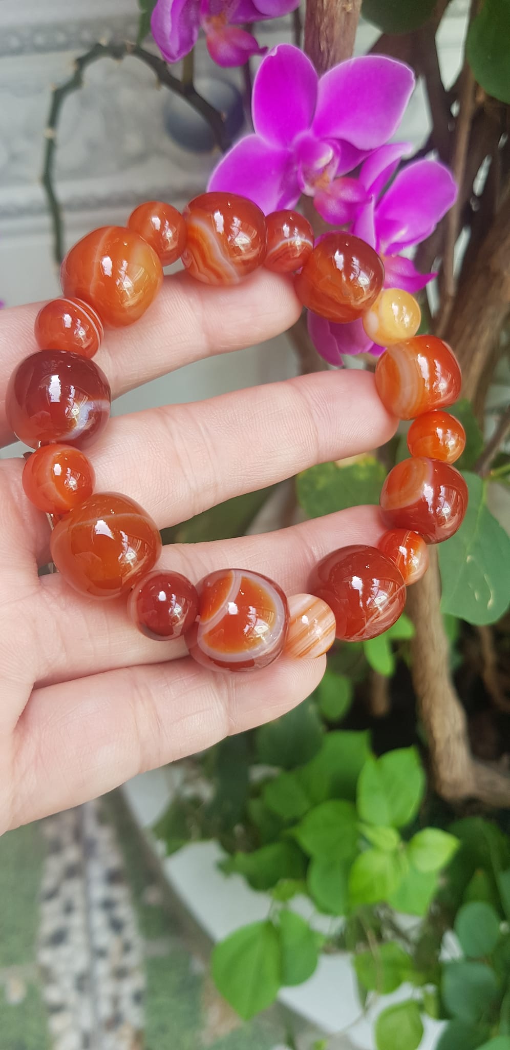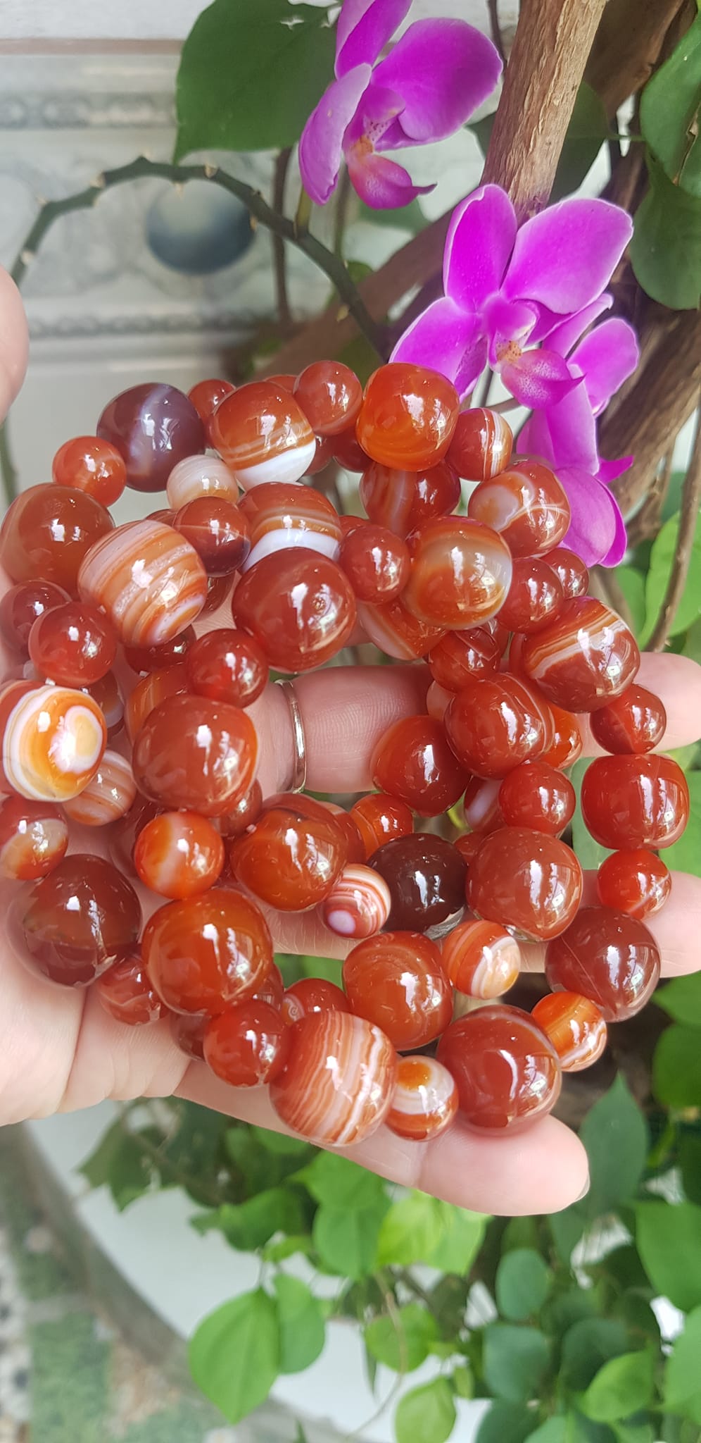 ✨Vòng mã não đỏ kiểu hạt bầu tròn to 15mm nhỏ 10mm màu đỏ vân đẹp nam nữ mệnh hỏa mệnh thổ đeo đẹp ạ