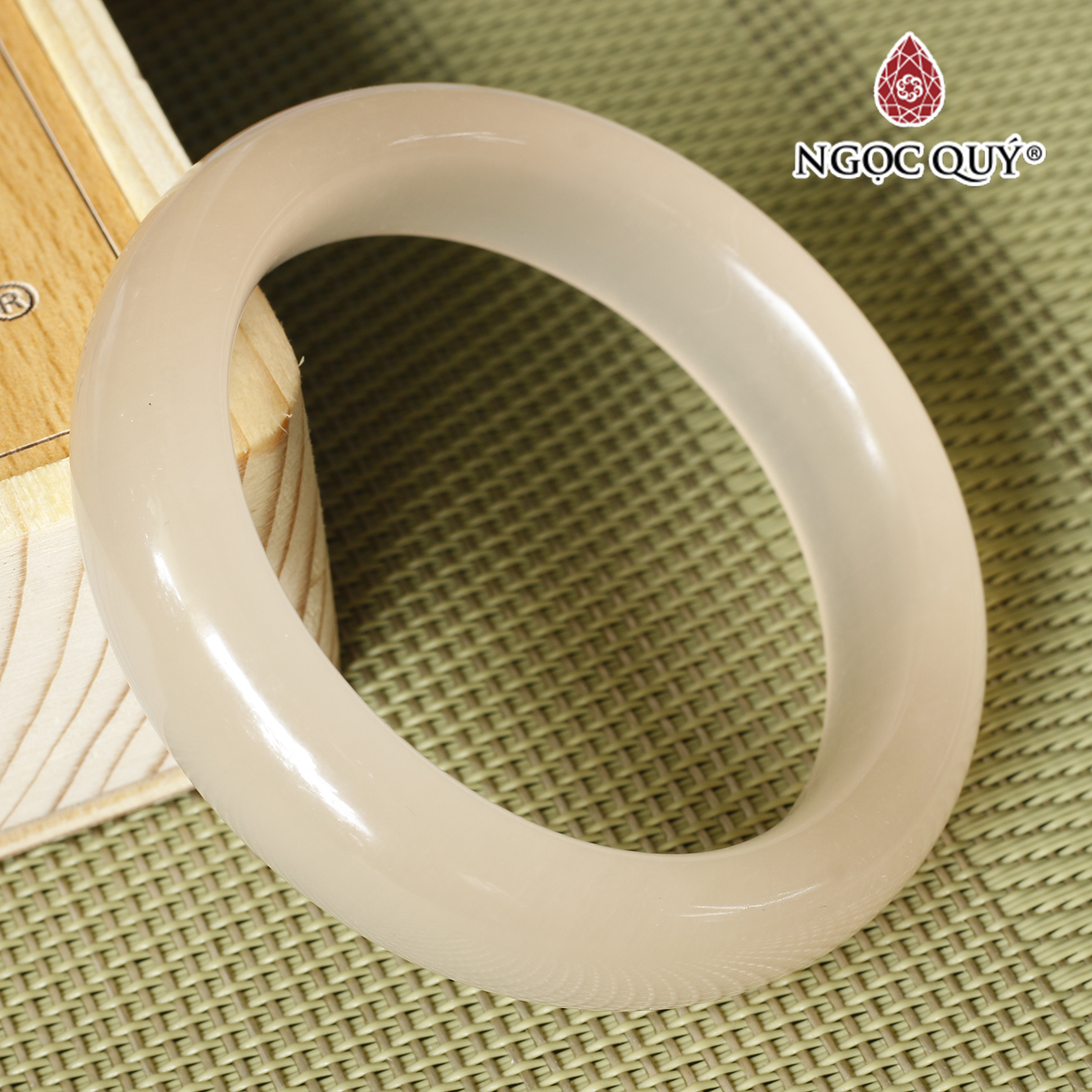 Vòng nguyên khối bản hẹ đá mã não trắng - Hợp Mệnh Kim & Thủy [ Ngọc Quý ]