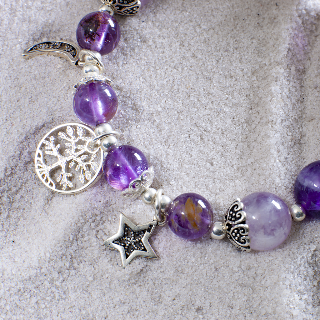 Vòng tay phong thủy Bạc 925 mix đá Thạch Anh Tím đeo lên vừa xinh lại mang năng lượng may mắn