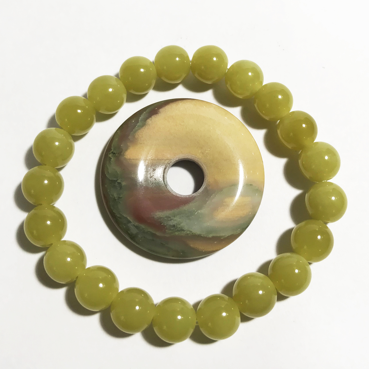 ✨Vòng tay chuỗi hạt ngọc serpentine hạt 10 li ( hạt 1cm) cho người mệnh Thủy và kim vàng chanh và bạch ngọc là ngọc thật của Việt Nam Vongtaymenhthuykim