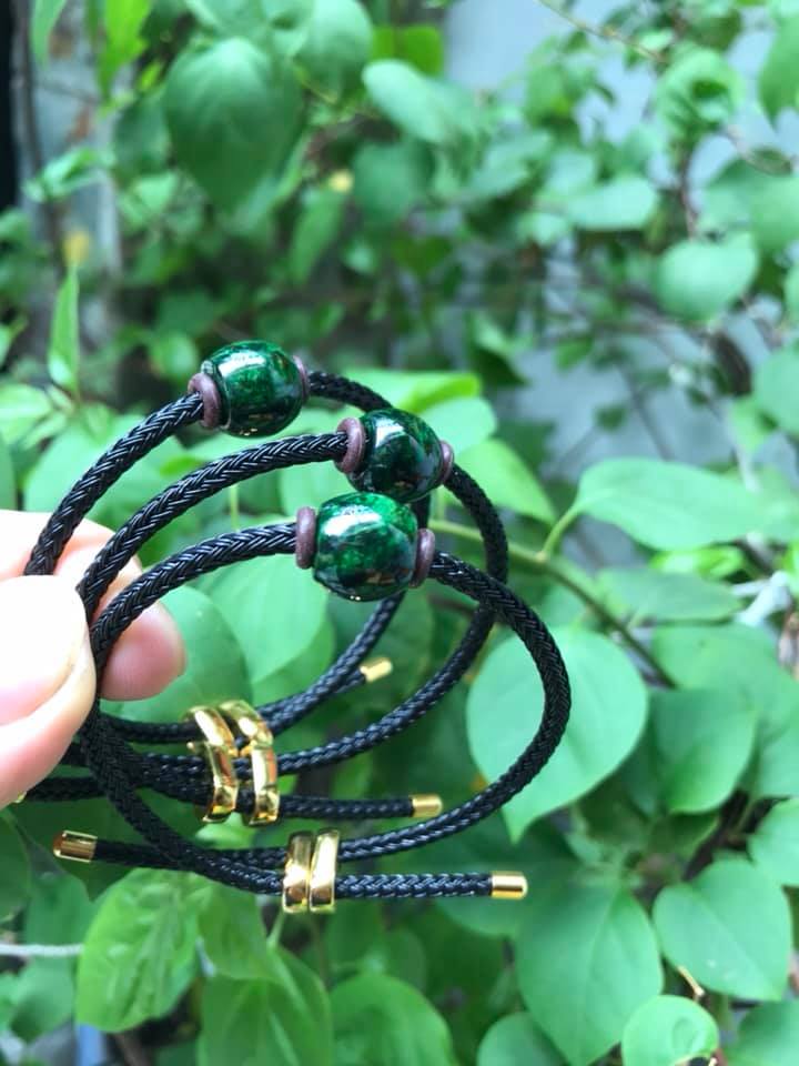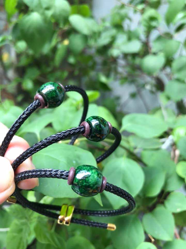 Mua tại TiktokVòng Tay Đá Cẩm thạch lu TRÒN xanh đậm dây đen kiểu xinh xắn bóng đẹp lắm
