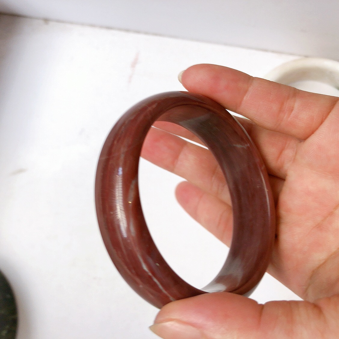 Vòng tay Nữ Bản Hẹ Mới Đá Mã Não Bông Tuyết Hồng nhẹ trắng trong bóng quá đẹp luôn ạ Ni 53mm x Cao 11mm x dầy 7mm Nữ Cân nặng 52kg - 55kg đeo