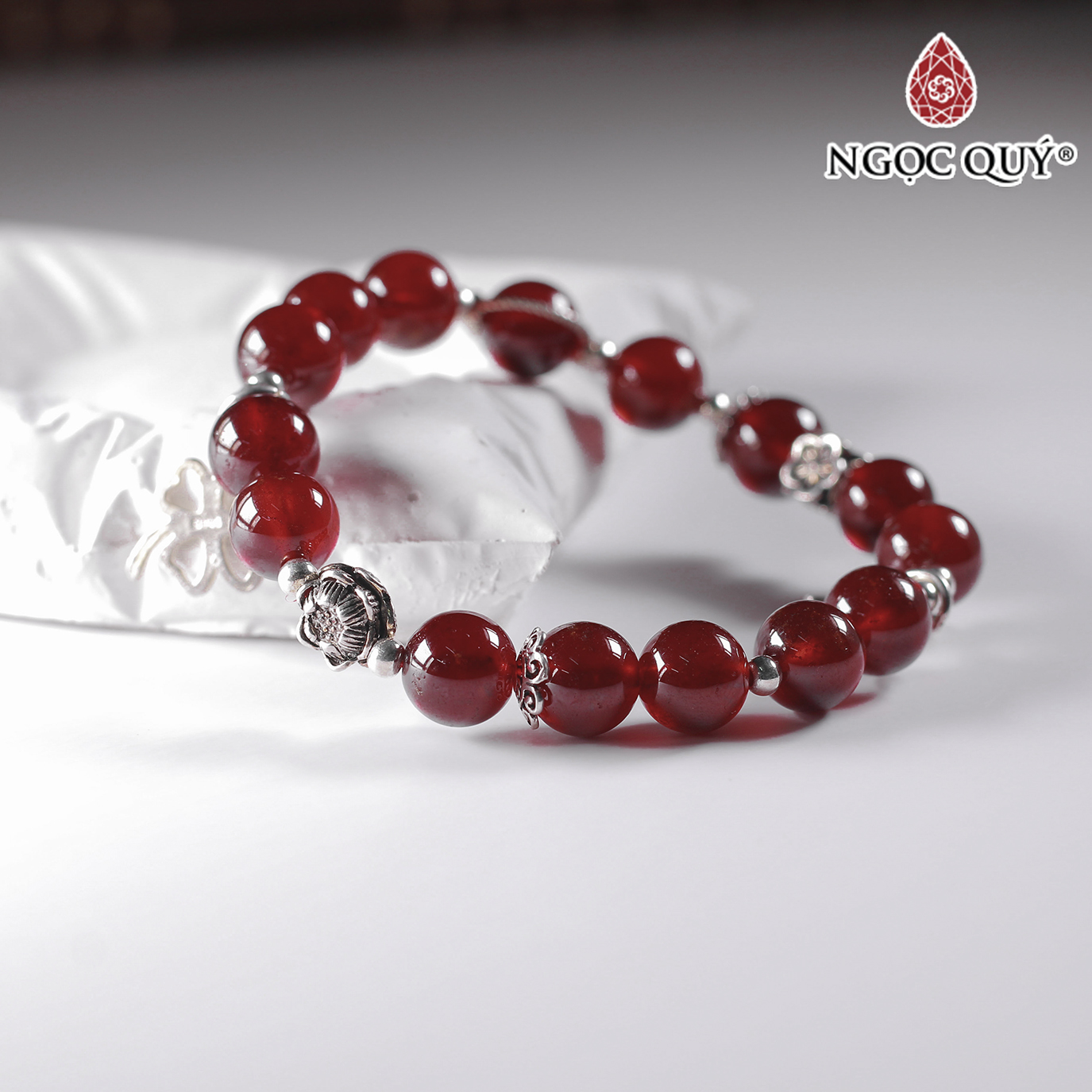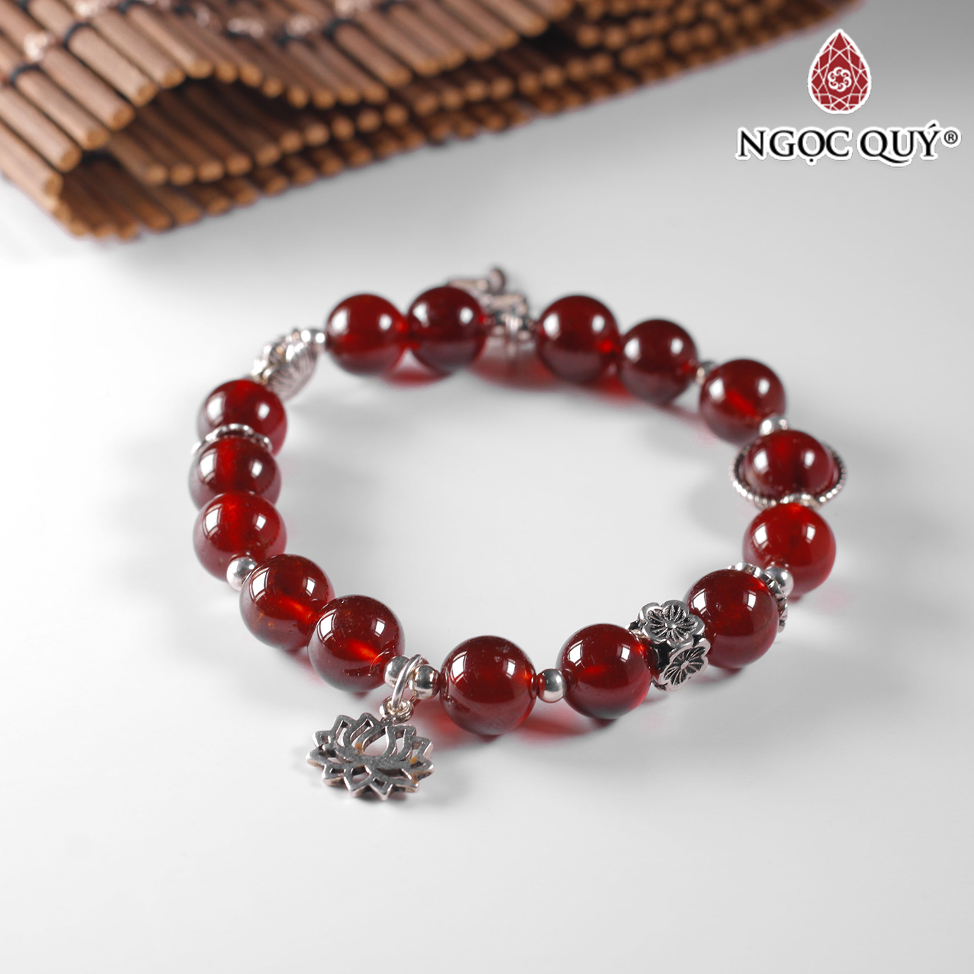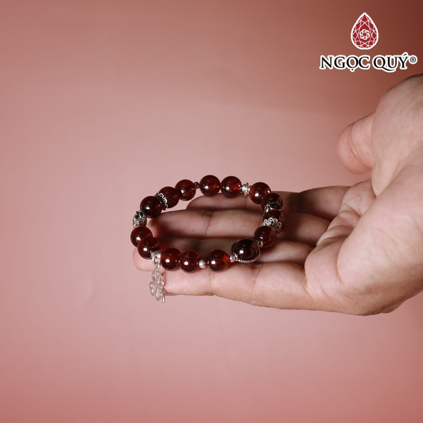 ✨Vòng tay đá Garnet AAA mix charm bạc mệnh hỏa, thổ - Ngọc Quý Gemstones