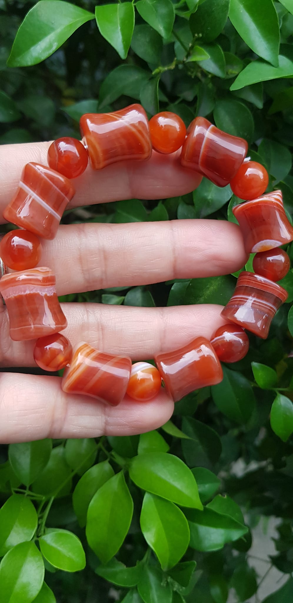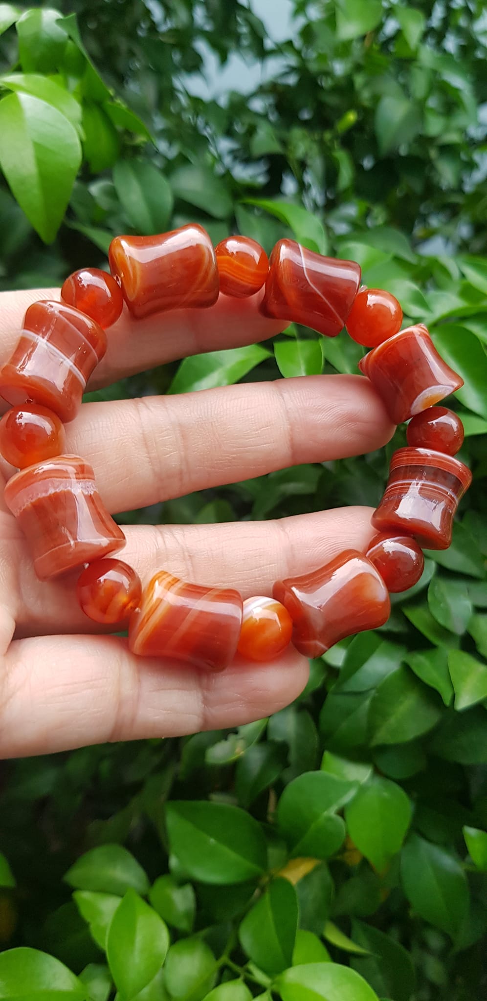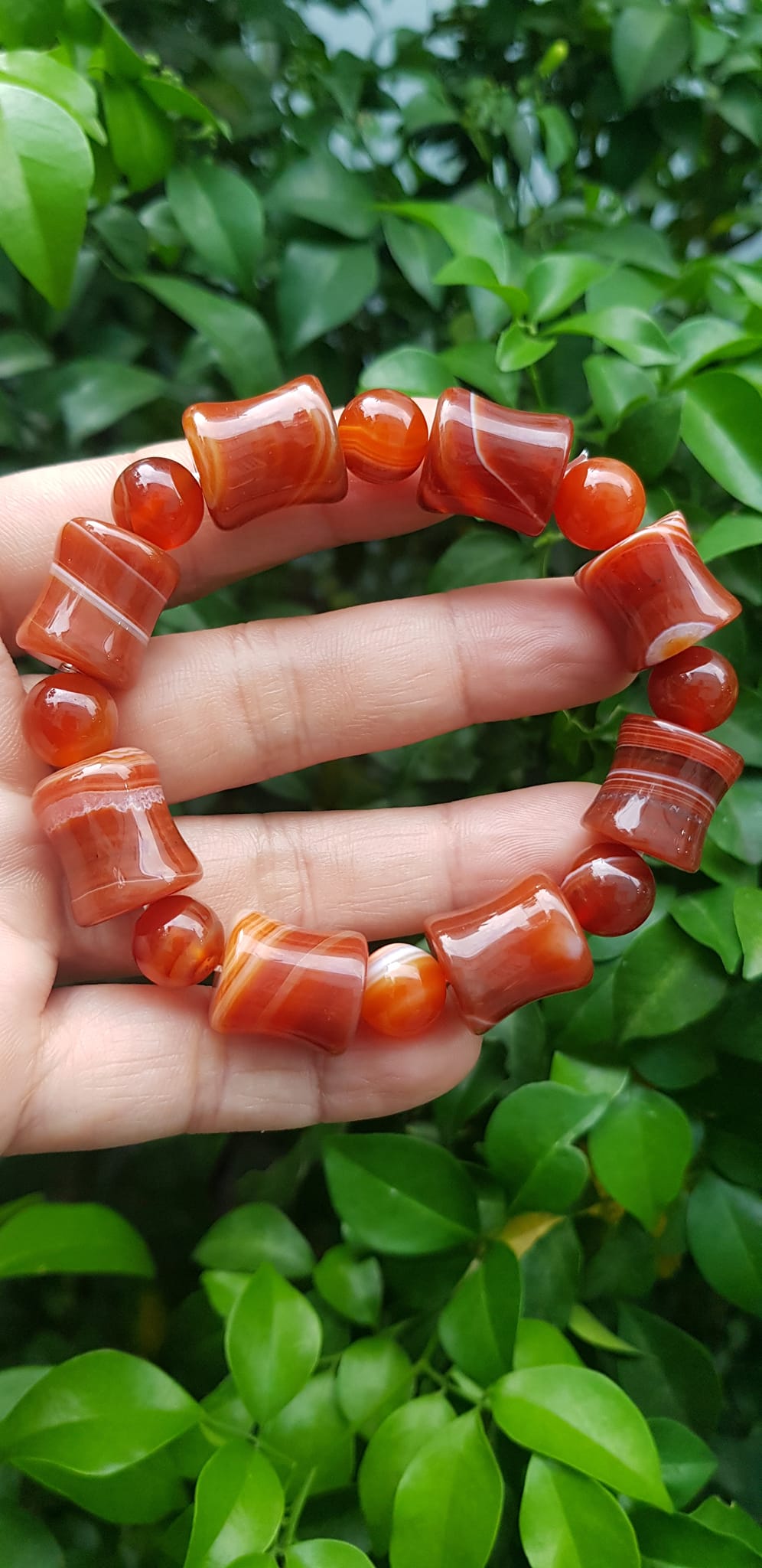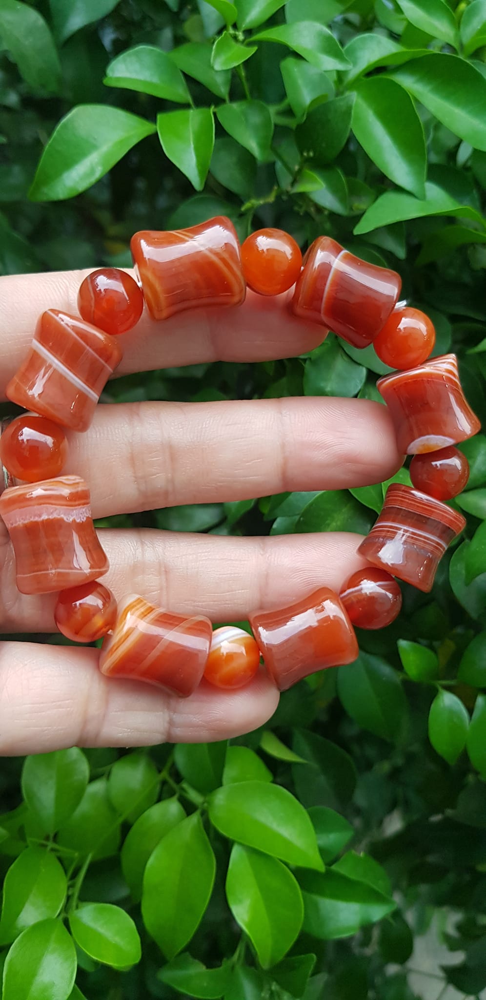 Vòng tay nữ đá mã não đỏ vân đẹp mới Ni 54mm x cọng 8,5mm nữ mệnh hỏa mệnh thổ 52kg - 60kg đeo ạ