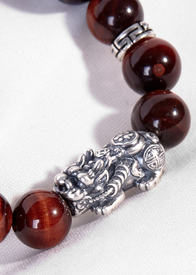 Vòng Tay Đá Mắt Hổ Nâu Đỏ Phối Charm Tỳ Hưu Bạc Ngọc Quý Gemstones