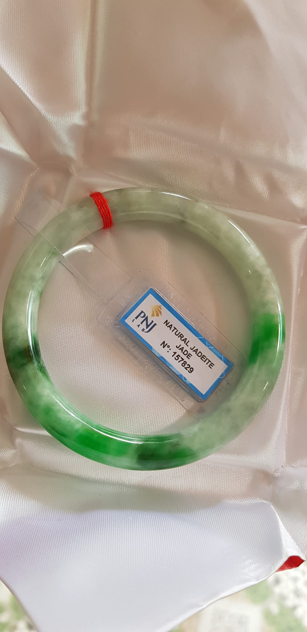 🍀💌🍀Vòng tay nữ đá Cẩm Thạch tự nhiên Đậu Lý Ni 51mm x c8mm vòng kiểm Natural Jadeite Pnj No 215715