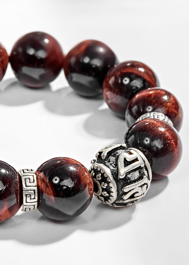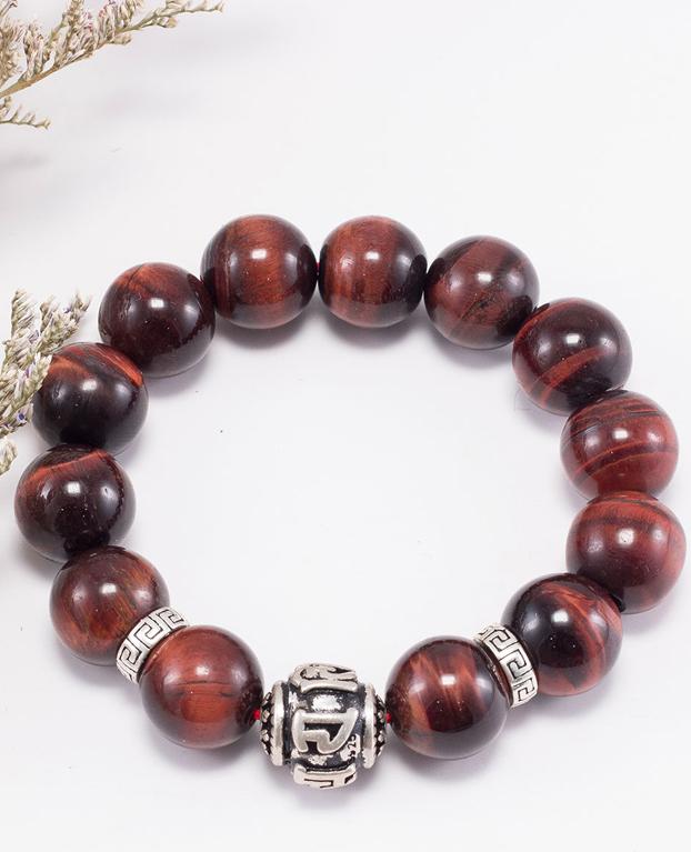 Vòng tay đá thạch anh mắt hổ phối charm lục tự bạc (14mm) hợp với người mệnh Hoả và mệnh Thổ, mang đến nhiều may mắn và giúp người đeo chạm được đến với năng lượng của vũ trụ.