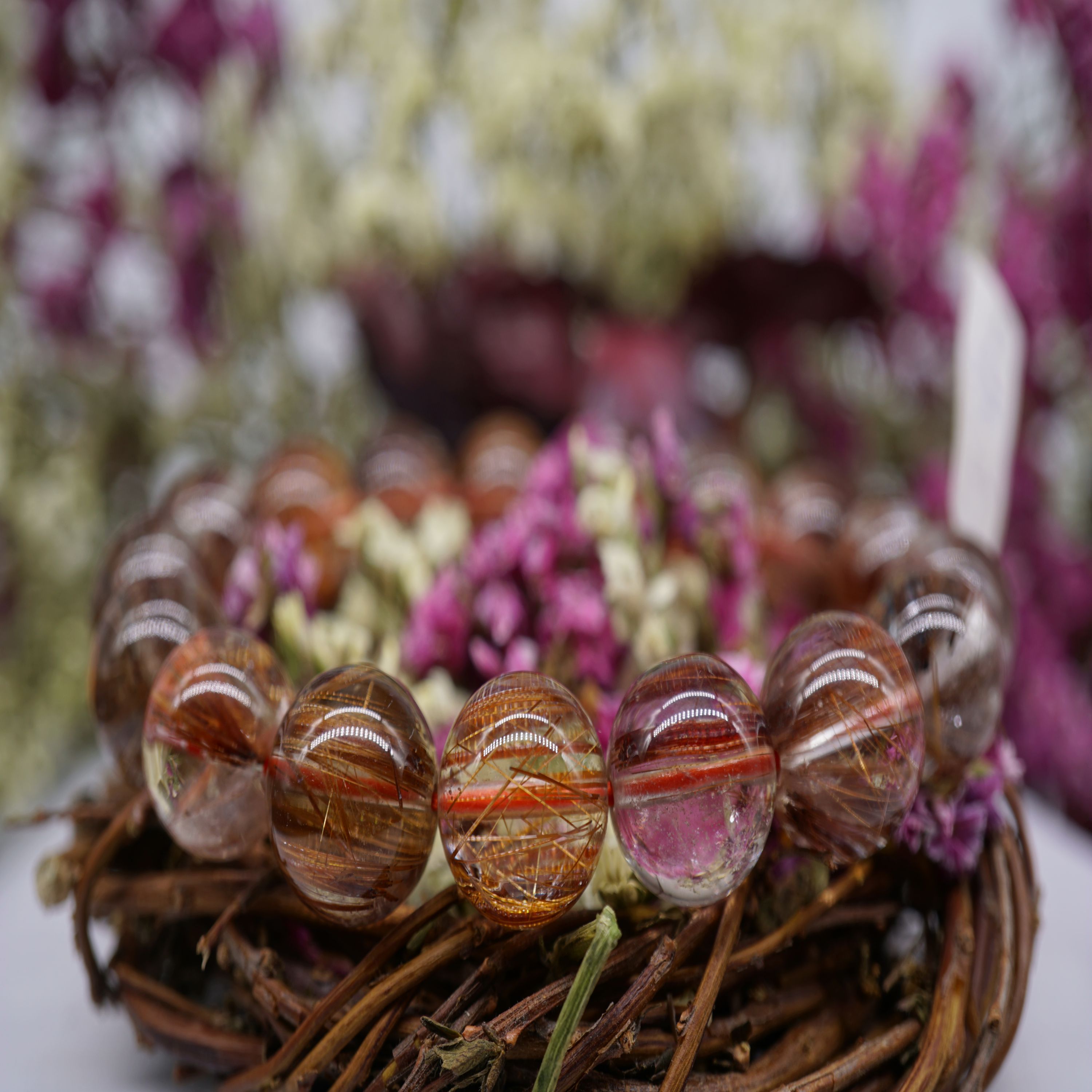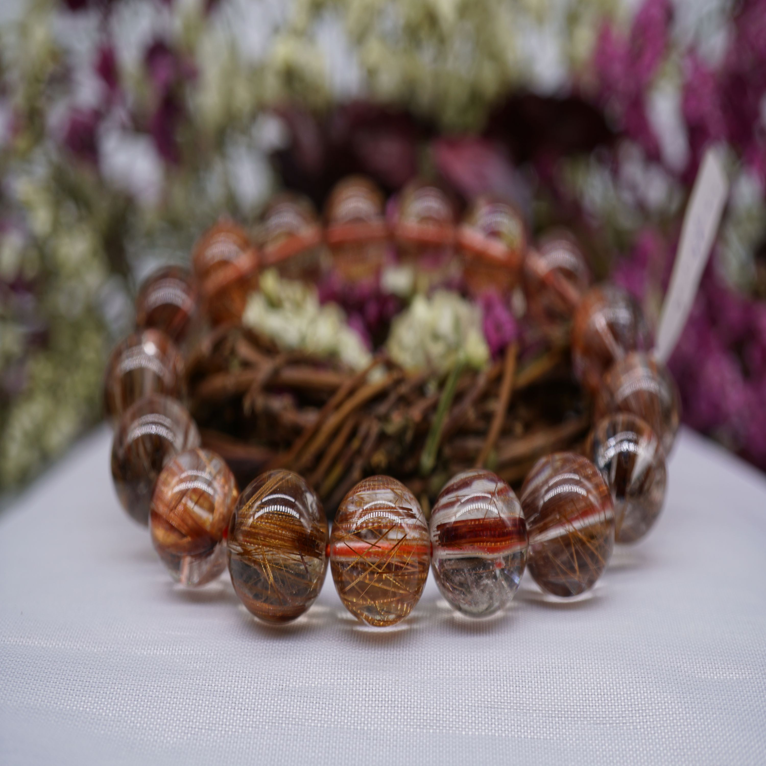 Vòng tay đá thạch anh tóc đỏ nâu siêu vip