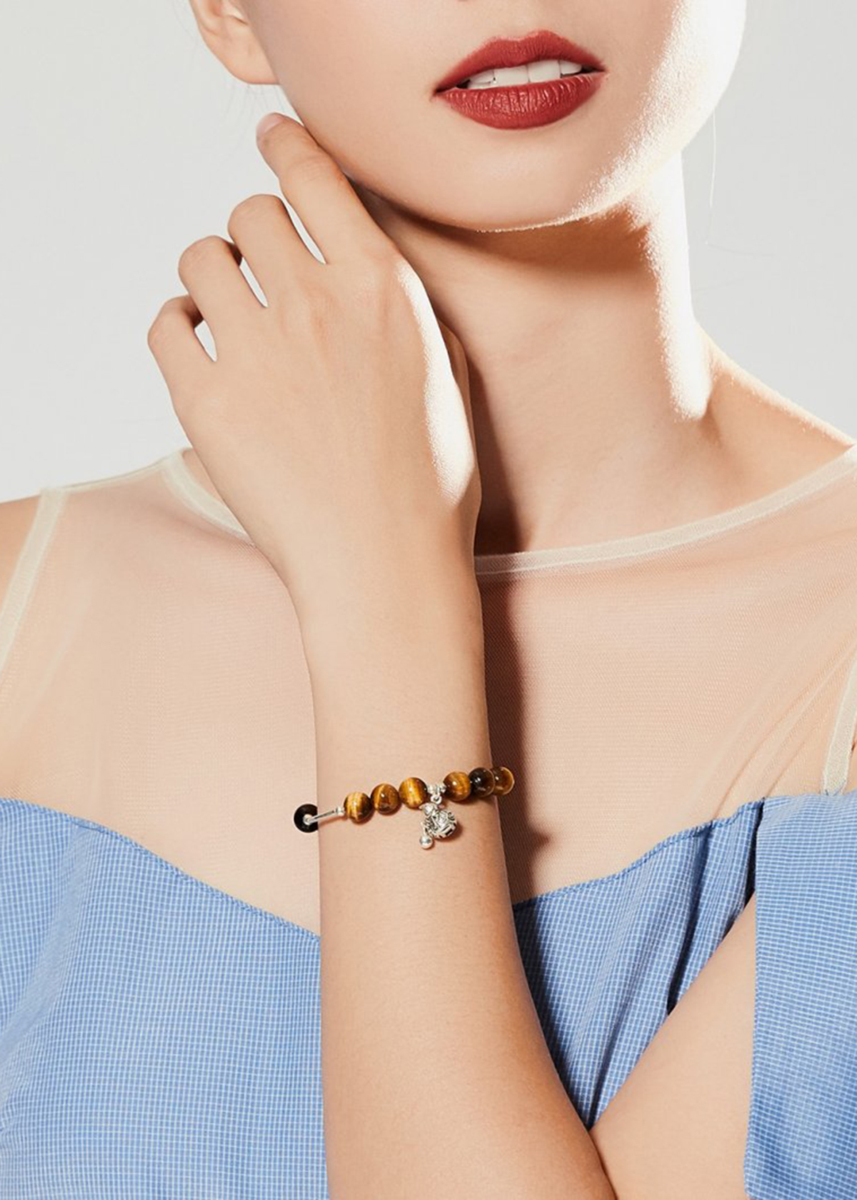 Vòng tay phongg thủy Mắt hổ vàng tâm 8mm + Thạch Anh Tóc nâu by Anqlo là sản phẩm được chế tác tinh xảo, có độ hoàn thiện cao bởi các nghệ nhân lâu năm