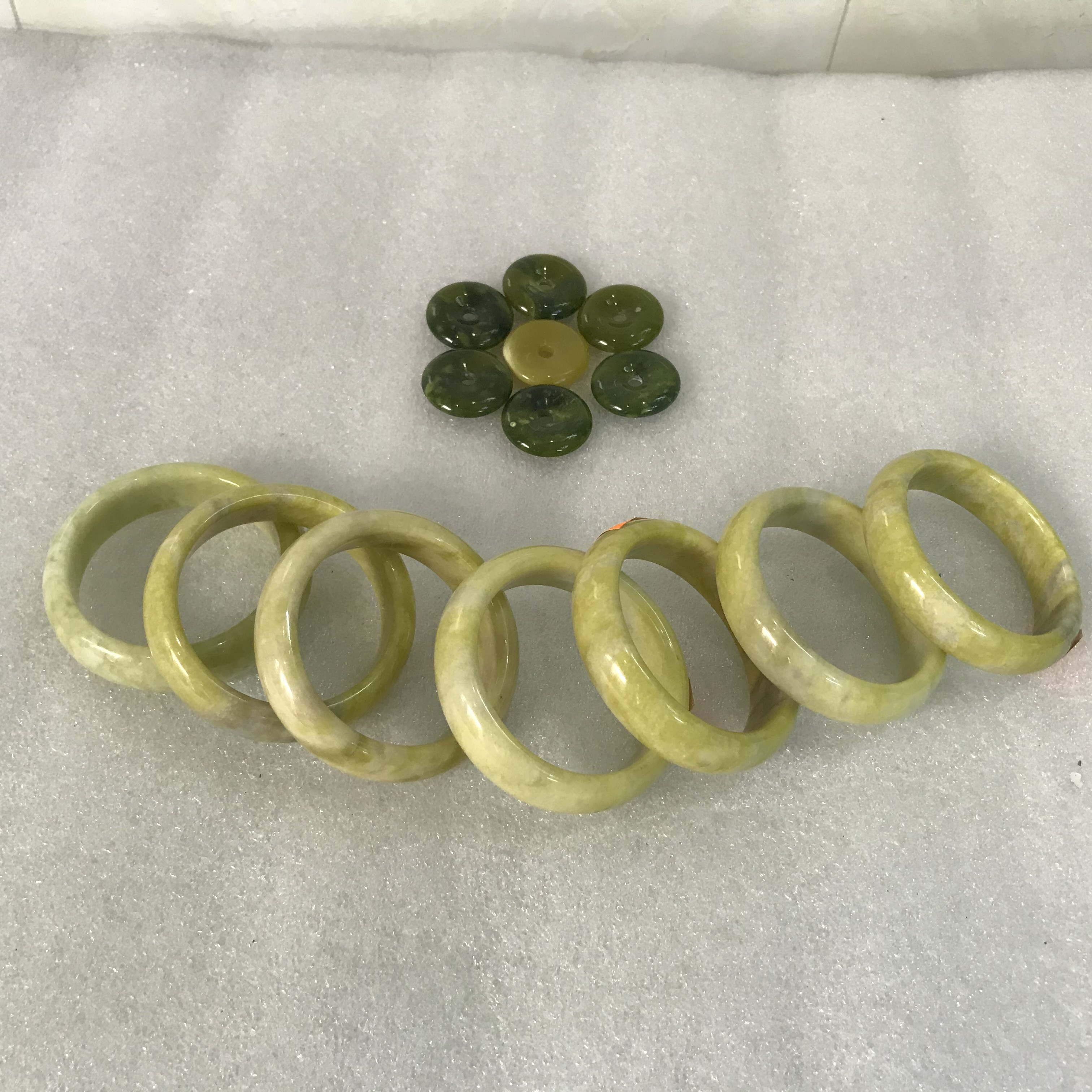 1. Tên gọi: Vòng tay ngọc vàng trong suốt ngọc của VN 2. Chất: ngọc serpentine màu như hình hoàn toàn tự nhiên của Việt Nam 3. Kích thước: Li hột là 16-17 li (1.7