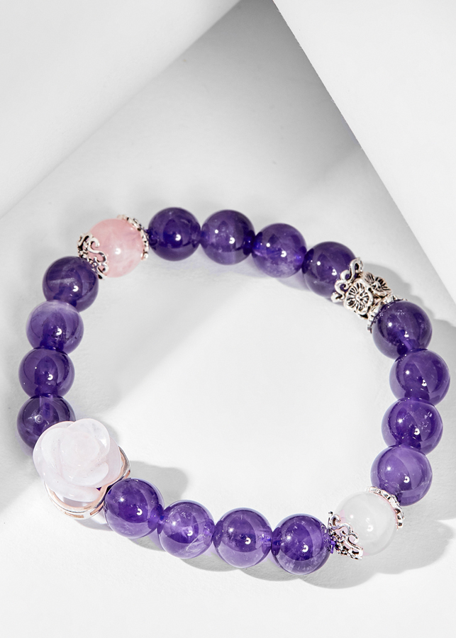 - Vòng Thạch Anh Tím Mix Thạch Anh Hồng 8mm + Hoa Mẫu Đơn Ngọc Quý Gemstones VT145 Đá phong thủy thạch anh tím là viên đá hộ mệnh bảo vệ bạn khỏi sự xui