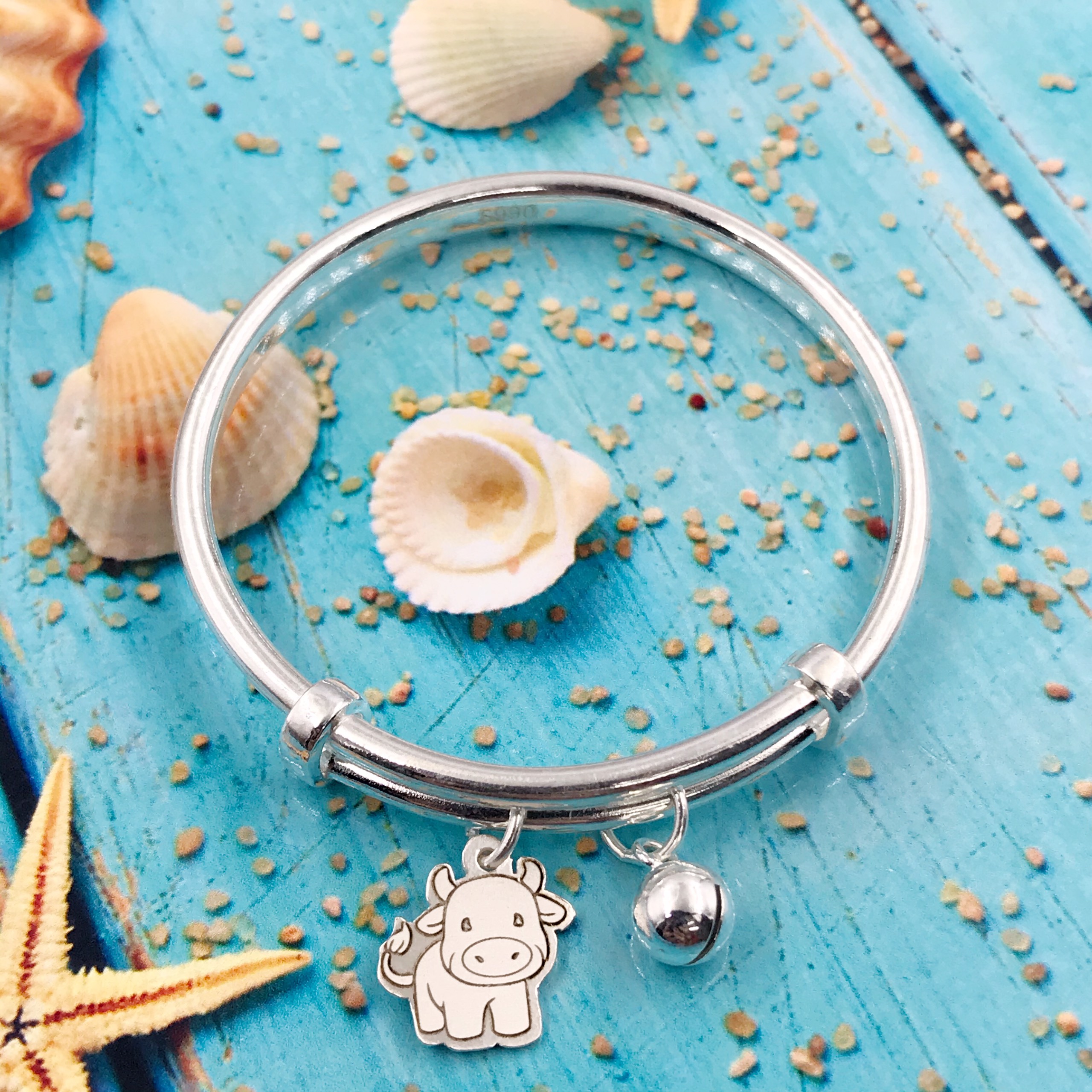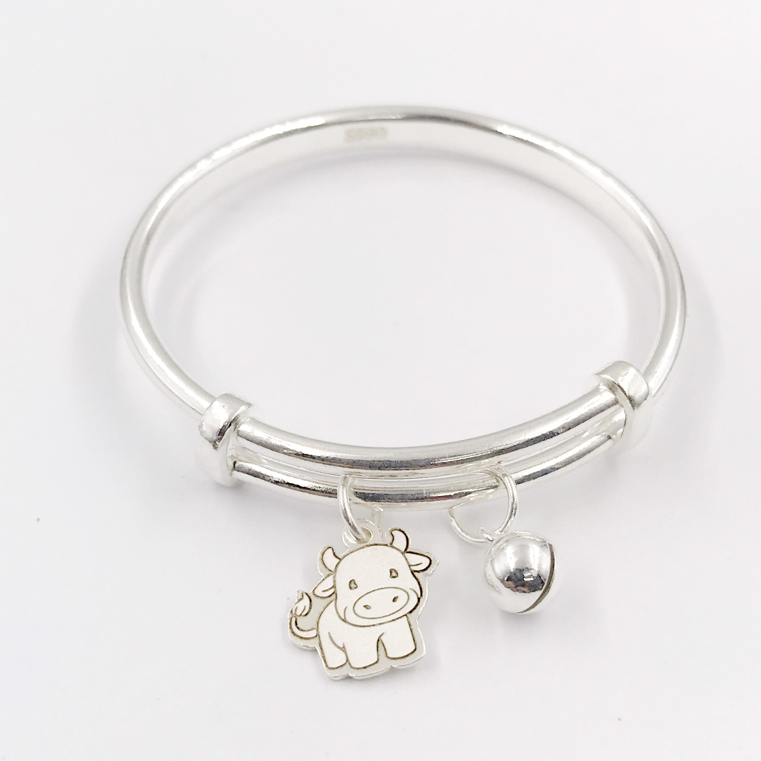 ✨Vòng Tay Lắc Tay Cho Bé Bạc S99 Nguyên Chất Chuông Bóng Và Bé Trâu LTE522 Điều Chỉnh Size