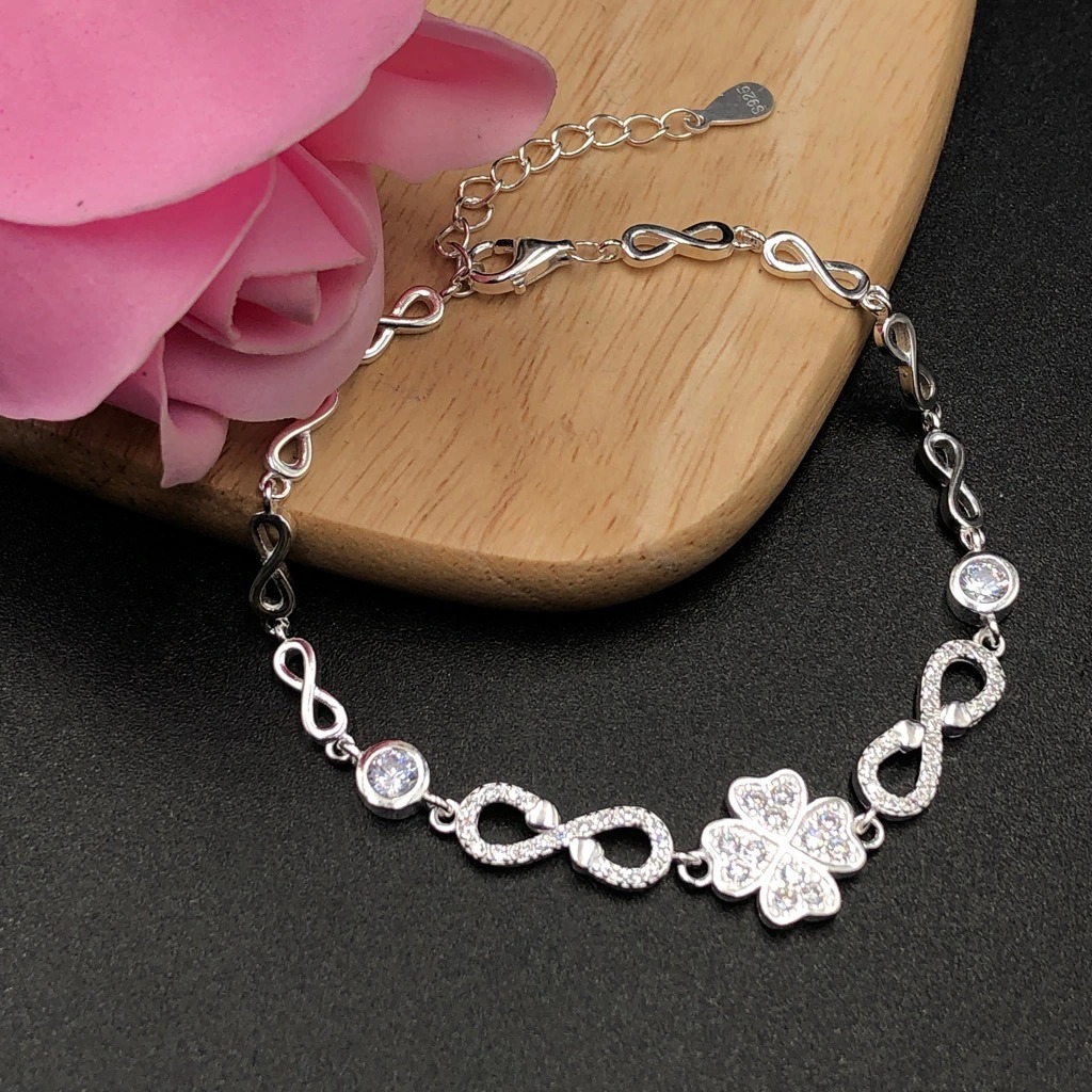 Vòng Tay , Lắc Tay Nữ Bạc 925 Cỏ 4 Lá Đính Đá May Mắn BẠC HIỂU MINH LTU434