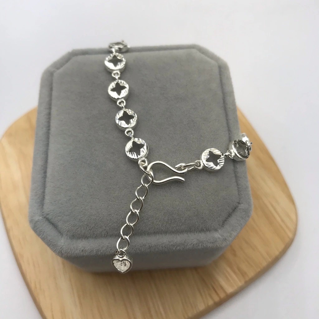 Vòng , Lắc Tay Nữ Bạc Ta Cỏ 4 Lá Đính Đá May Mắn Bạc Hiểu Minh LTU576