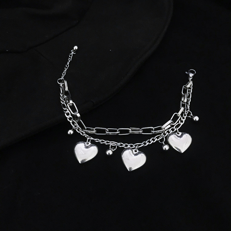 ✨Vòng tay Lắc tay trái tim 2 tầng hạt bi tròn unisex đa phong cách
