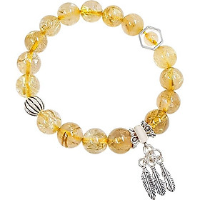 Vòng Tay Phong Thủy Thạch Anh Tóc Vàng Mix Charm