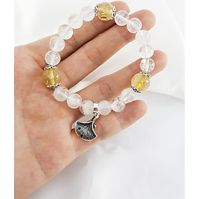 Vòng tay phong thuỷ nữ đá thạch anh trắng trong tự nhiên kiểu vuông giác tròn Size hạt vuông 10mm hạt tròn nhỏ 6mm Nữ mệnh kim mệnh Thủy đeo hợp may mắn tốt sức