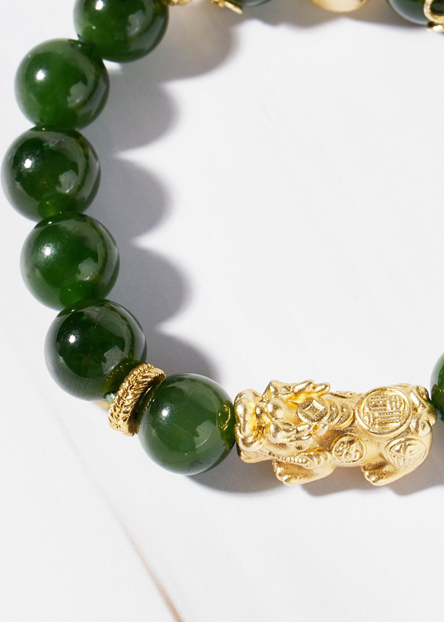 Vòng tay ngọc bích phối tỳ hưu bạc mạ vàng 24k Ngọc Quý GemstoneVòng tay ngọc bích phối tỳ hưu bạc mạ vàng 24k Ngọc Quý Gemstone