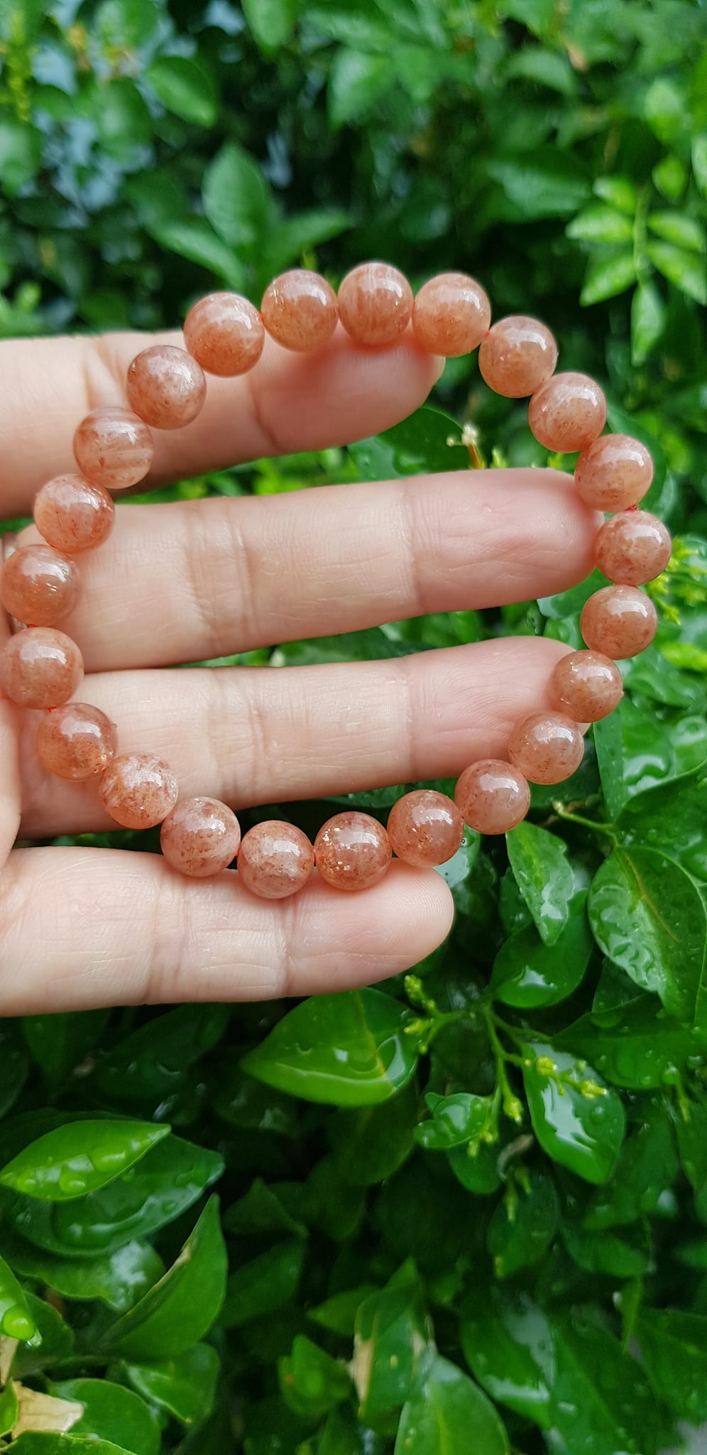 Vòng tay nữ đá mặt trời Sunstone Size 8li hay 8mm đẹp quyến rũ sang trọng đem lại sự tự tin Nổi bật bởi tông màu hồng cam nhẹ nhàng lấp lánh của đá mặt