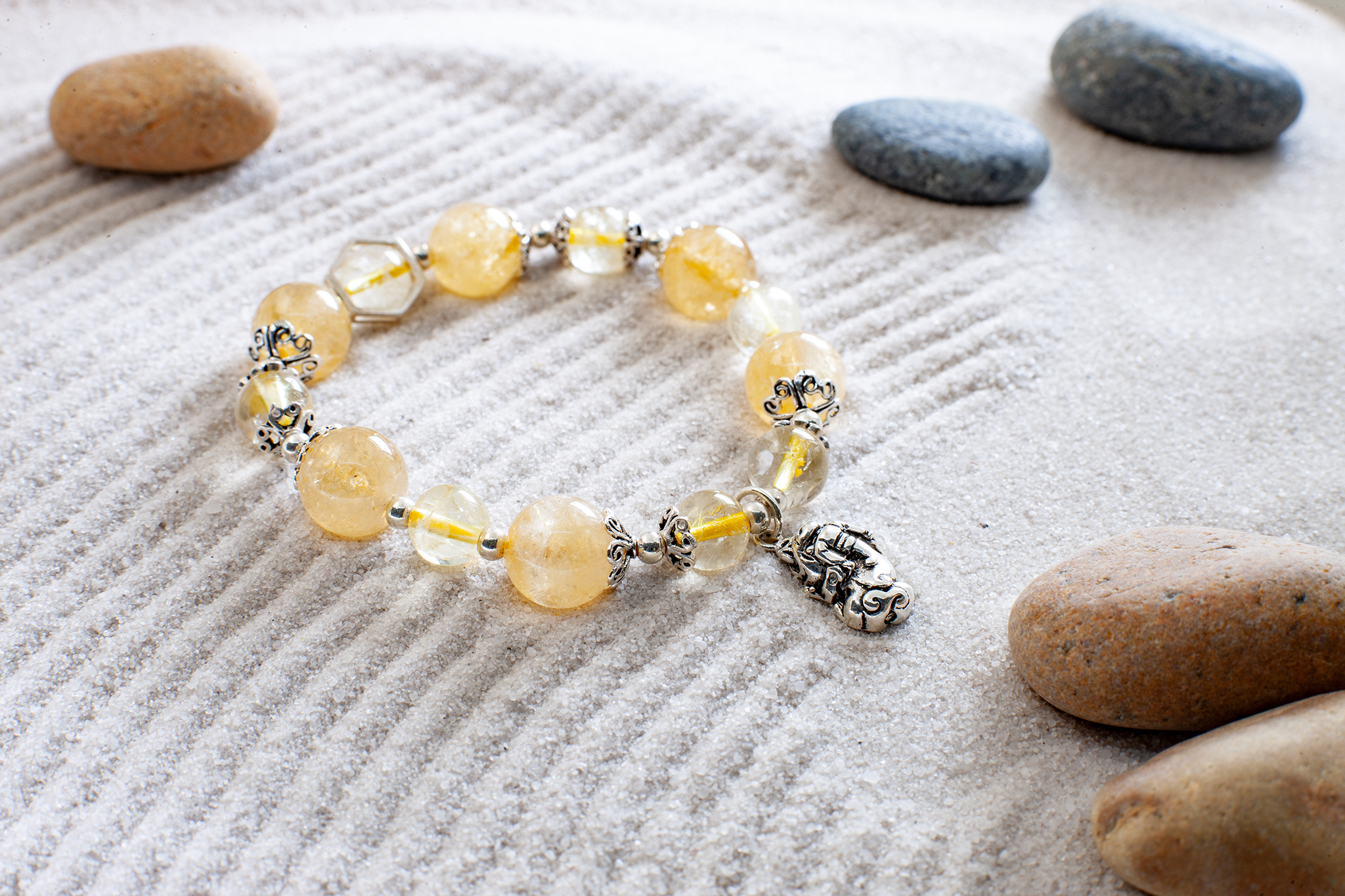 Vòng phong thủy citrine tóc vàng được biết đến như một loại đá mang lại bình an, may mắn.