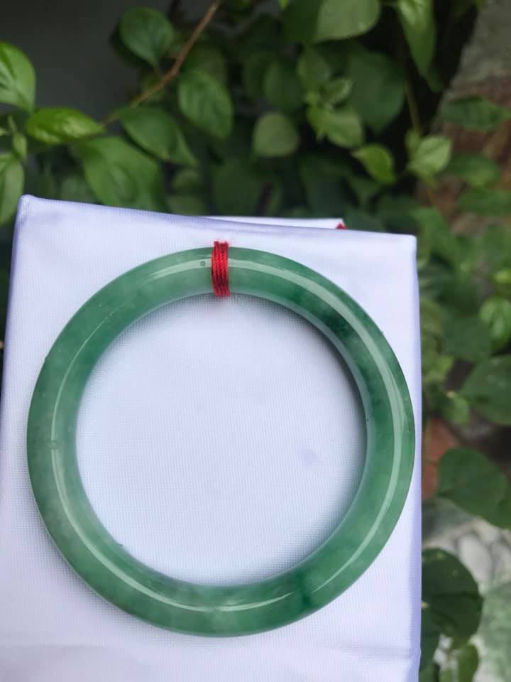 Vòng cẩm thạch Ngọc Đẹp Lý A SỊN 50mm x 7mm tự nhiên màu xanh ngọc bóng điểm xanh nữ 50kg - 54kg ạ