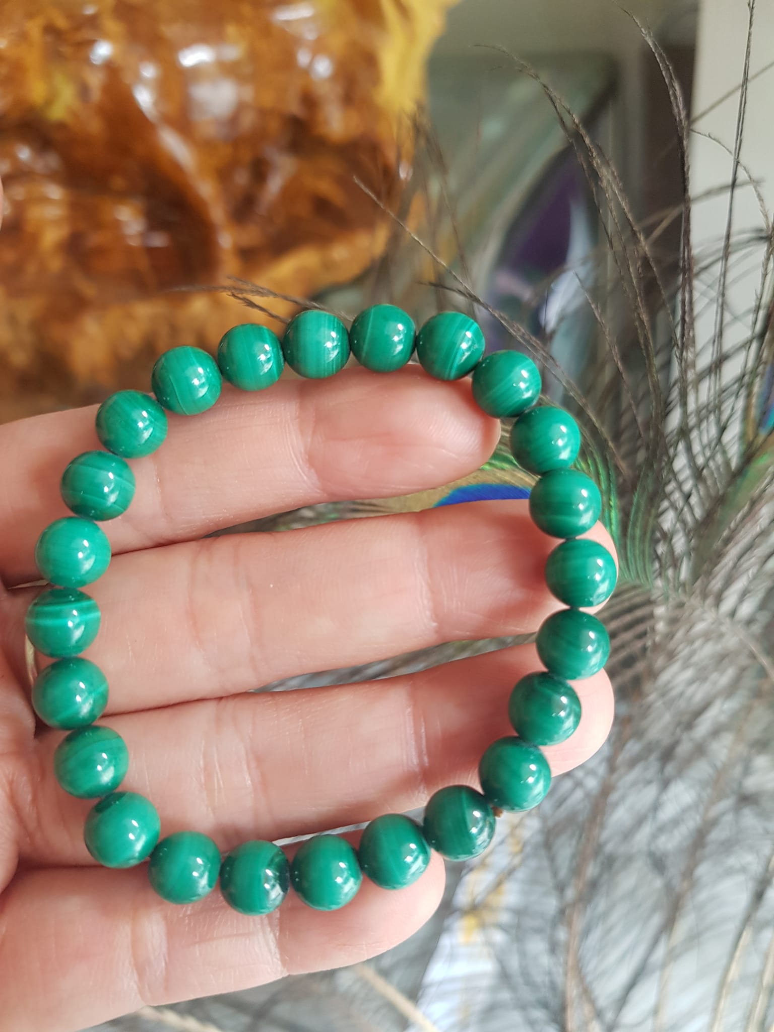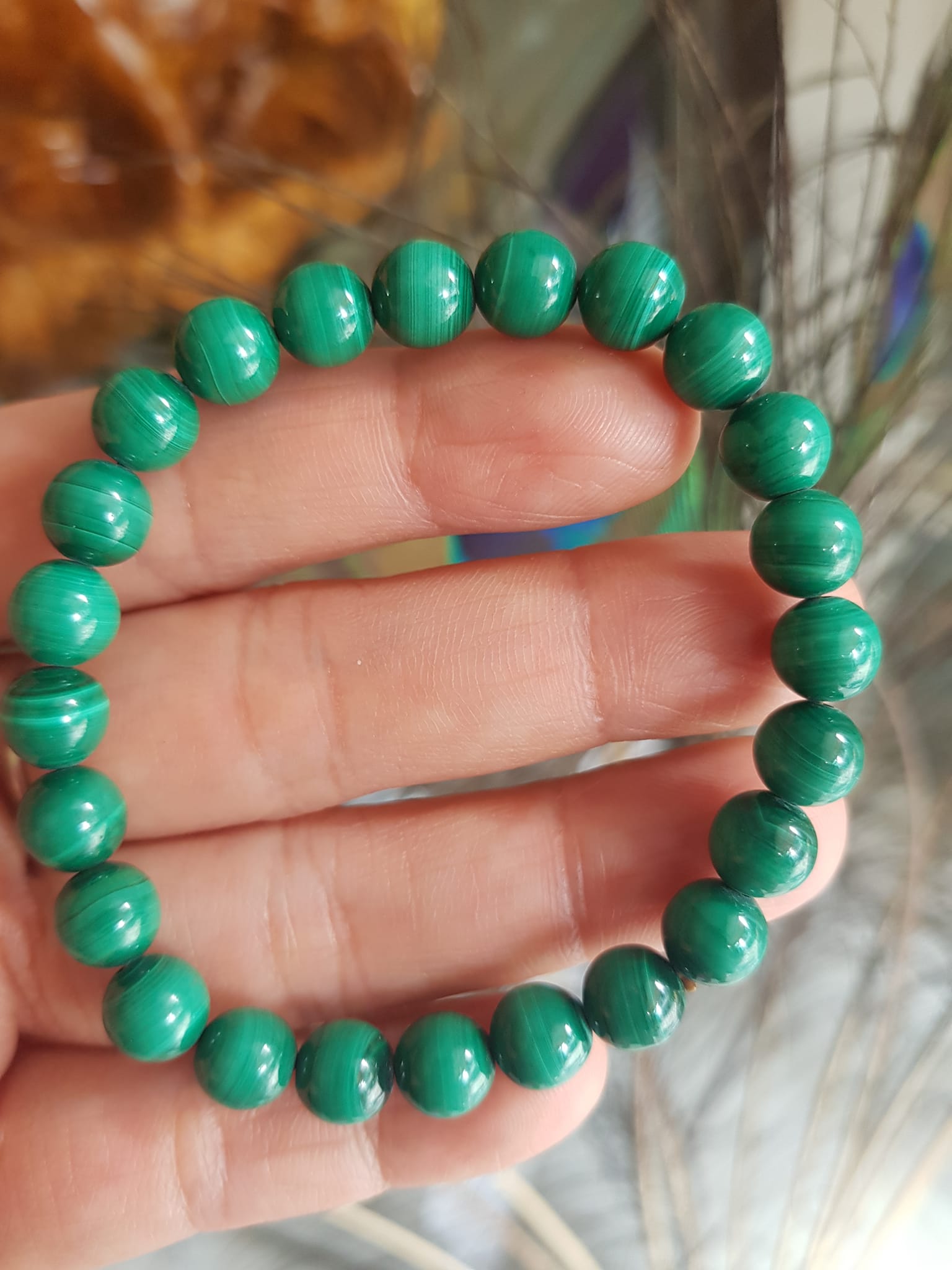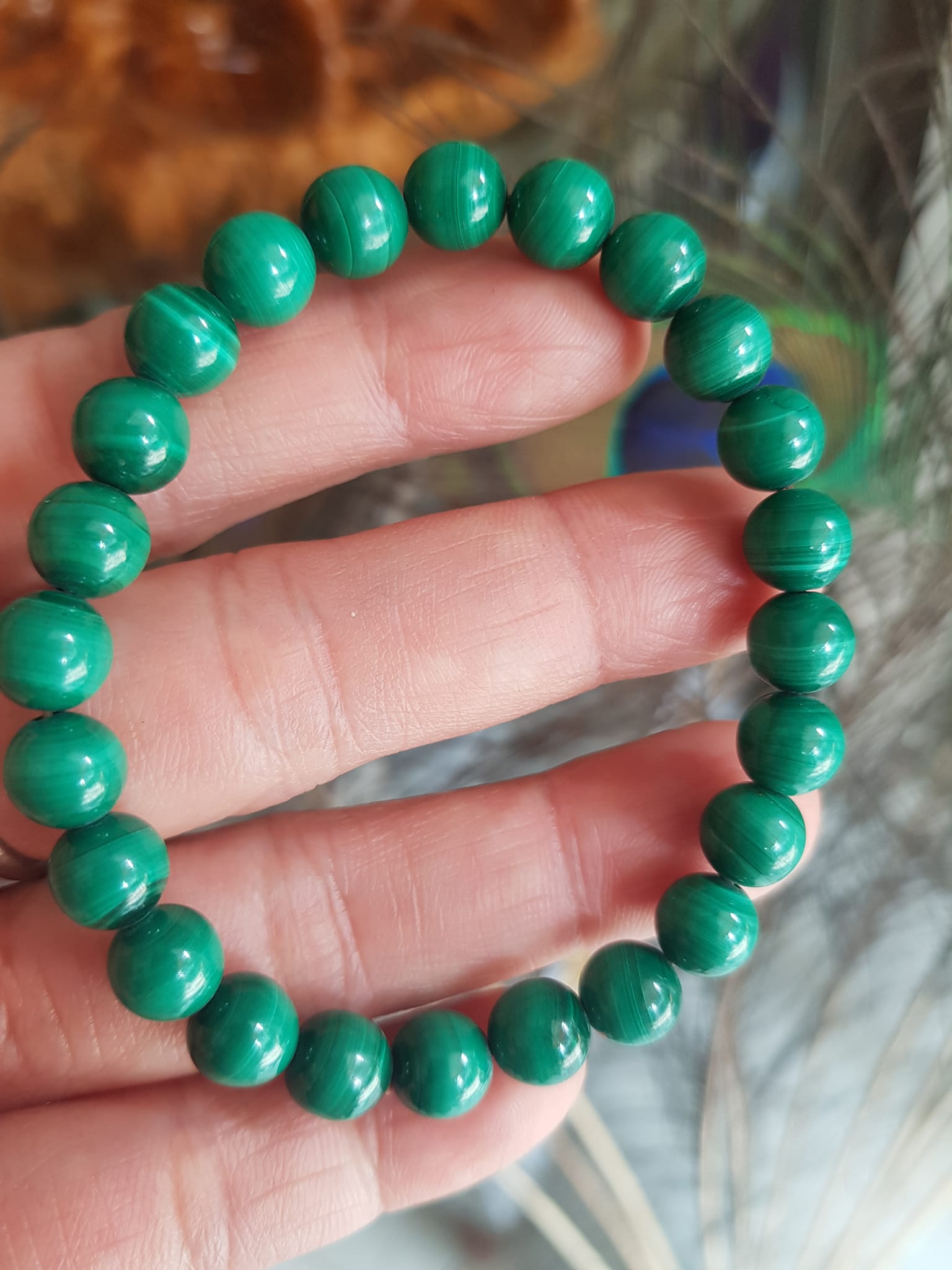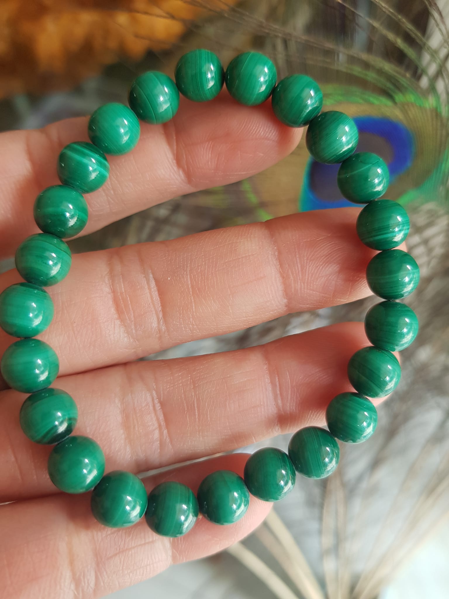✨Vòng Tay Phong Thủy Đá Lông Công hay gọi là đá Malachite tự nhiên bóng đẹp Size vòng 7,5mm nữ mệnh Mộc mệnh Hỏa Vòng Xanh Đá Lông Công Vân tự nhiên đẹp đeo tốt sức khỏe, đẹp, may mắn trong công việc ạ