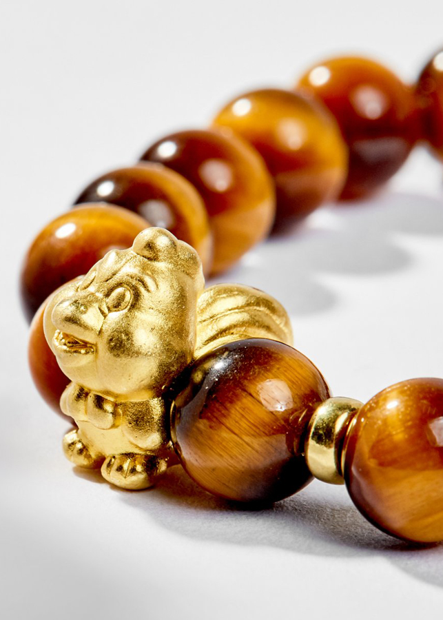 VÒNG TAY ĐÁ MẮT HỔ VÀNG NÂU CHARM TÌ HƯU: Theo truyền thuyết, Tì Hưu là linh vật đầu rồng thân lân, có sừng nhưng không có hậu môn, vì thế có khả năng thu