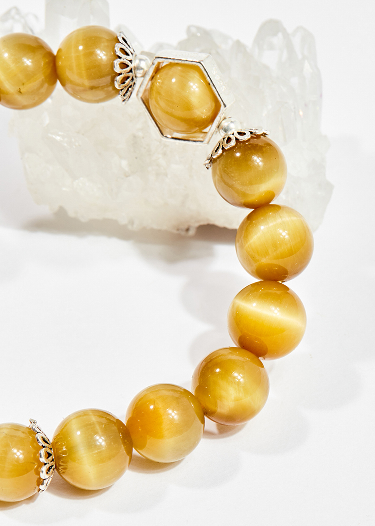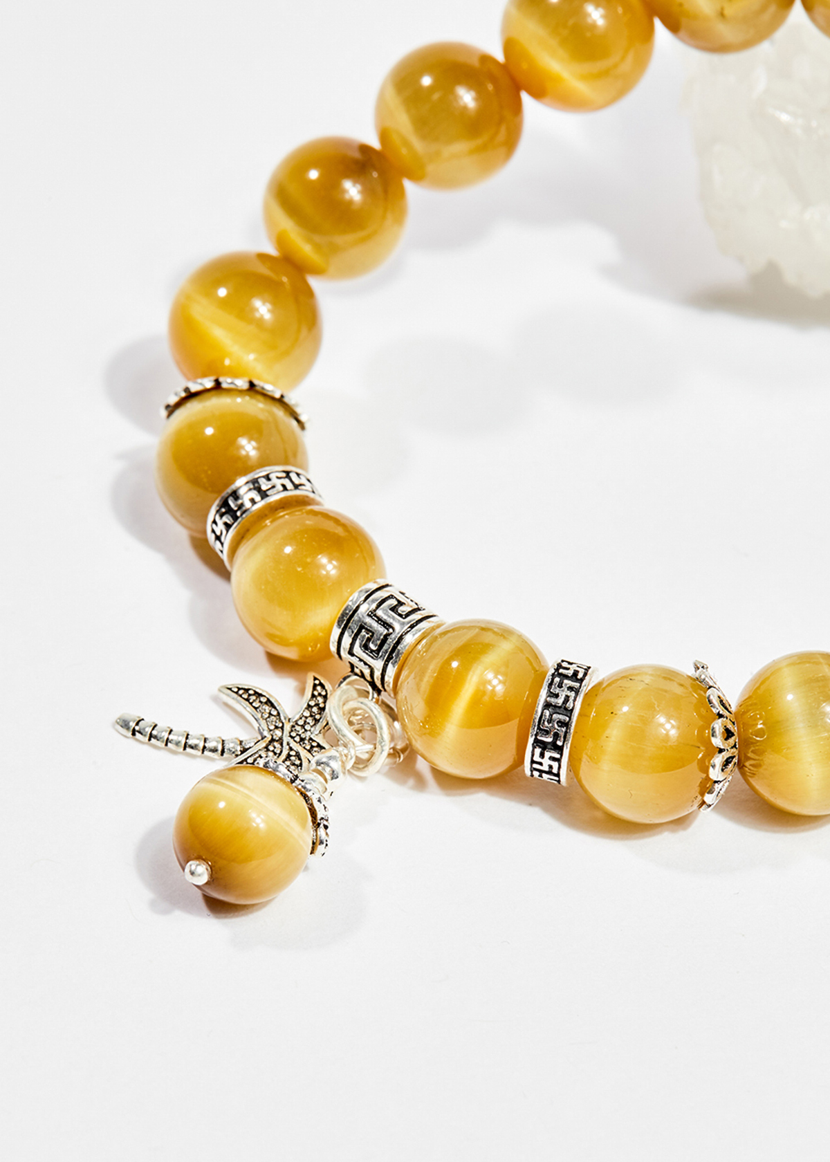 Vòng tay thiên nhiên đá mắt hổ vàng tâm phối charm bạc - Hợp mệnh kim, thổ | Ngọc Quý Gemstones |